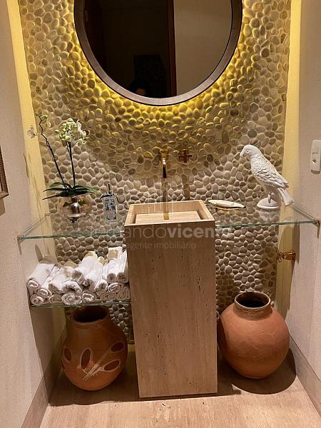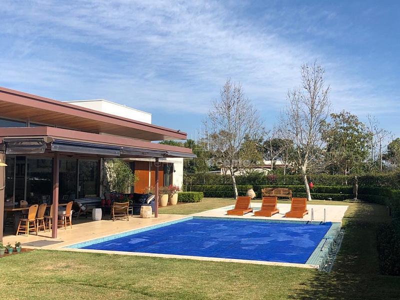Uma casa que abraça a natureza e privilegia a privacidade! São 2.108m² de terreno e 500m² construídos, dispondo de amplo living (estar e jantar) totalmente integrado à varanda externa com pé direito alto, lareira, lavabo e home theater. No setor íntimo temos 4 suítes aconchegantes e espaçosas com closet + acesso ao jardim. Para o lazer e bem-estar o repertório é completo, conta com espaço gourmet dedicado e integrado aos demais ambientes, uma bela piscina com deck em madeira e um paisagismo deslumbrante envolvendo toda extensão da residência!