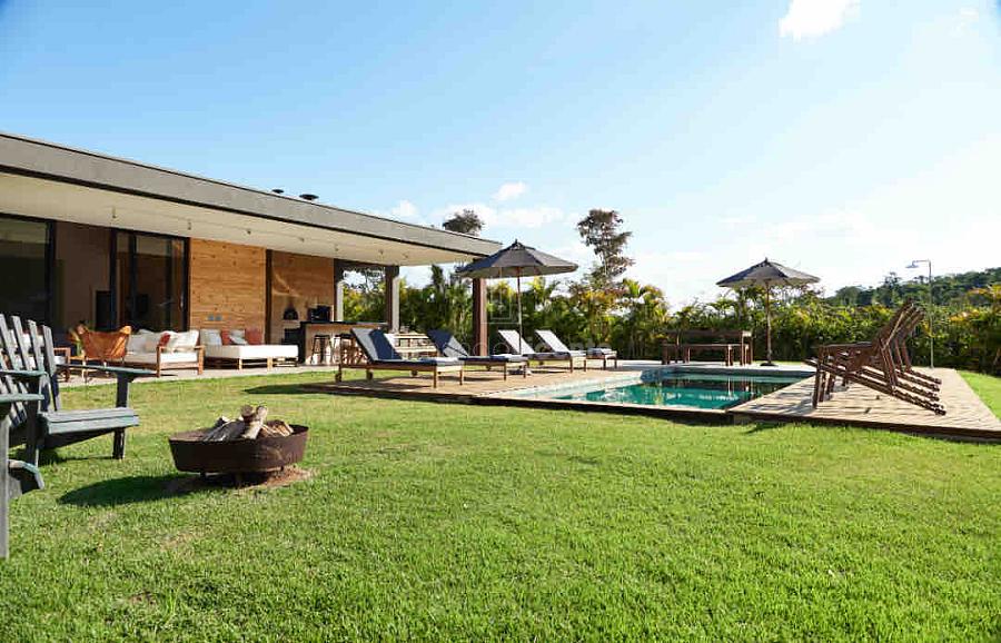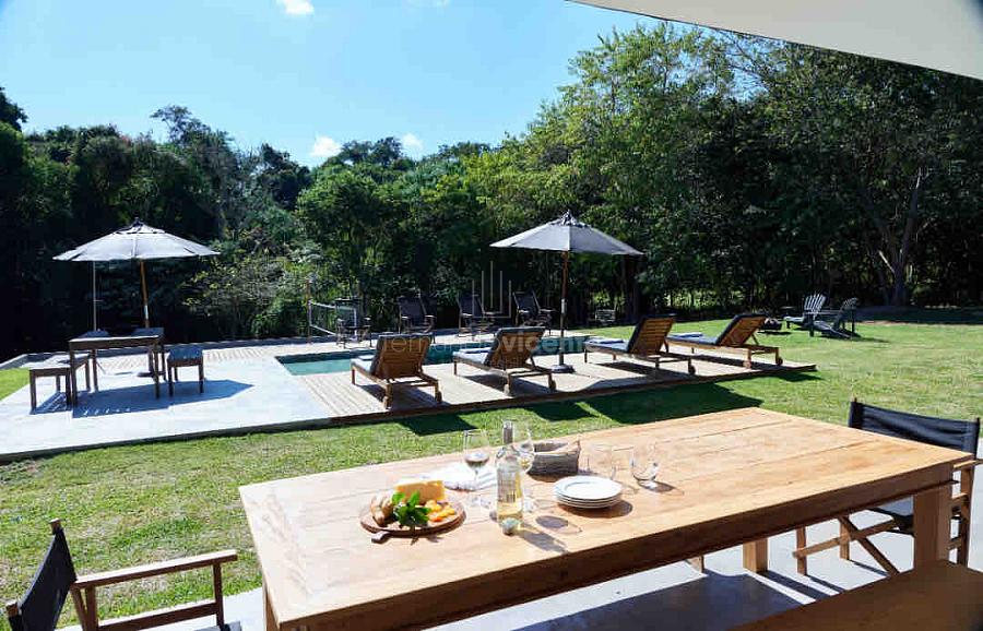 Com uma área total de 3.133m² e uma área útil de 447m², esta casa espaçosa e bem projetada oferece todo o conforto necessário para uma estadia inesquecível. Com cinco suítes, acomodando confortavelmente até 10 pessoas, a casa é o local perfeito para reunir família e amigos em grande estilo.