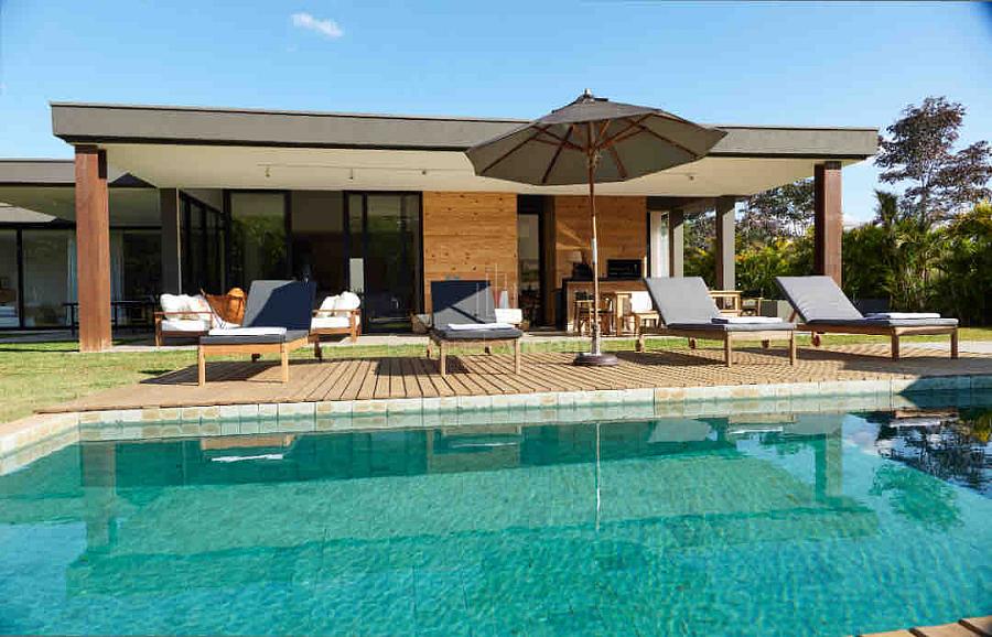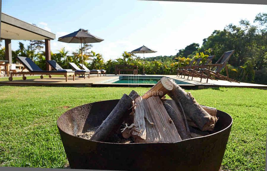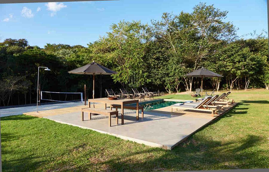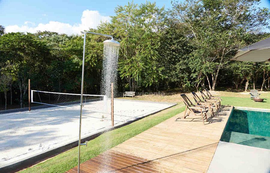 Os espaços sociais são igualmente impressionantes, com uma sala de TV climatizada, sala de estar acolhedora com lareira e uma elegante sala de jantar para 10 pessoas. A área externa é um verdadeiro paraíso, com uma piscina convidativa, espreguiçadeiras para relaxar ao sol, um lindo jardim onde se pode contemplar o pôr do sol, uma churrasqueira para refeições ao ar livre, um forno de pizza para criar deliciosas iguarias e uma quadra de Beach Tennis para se divertir com amigos e familiares.
