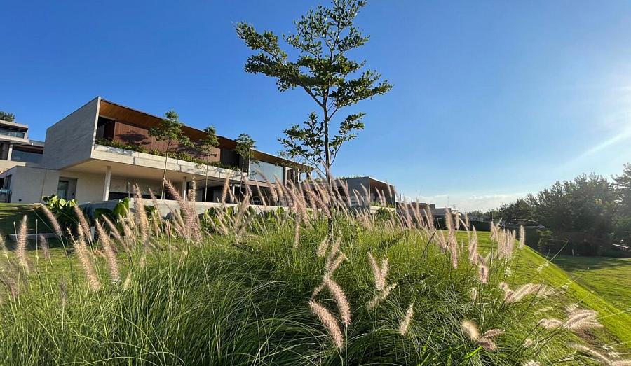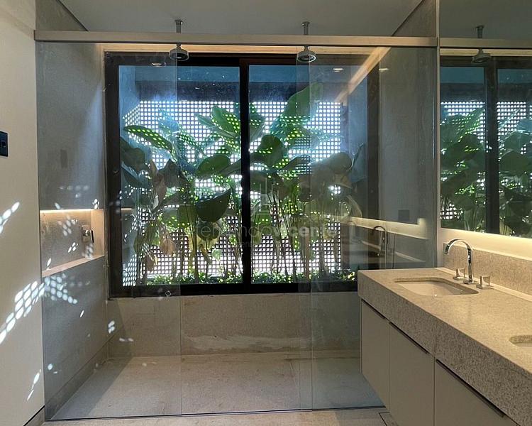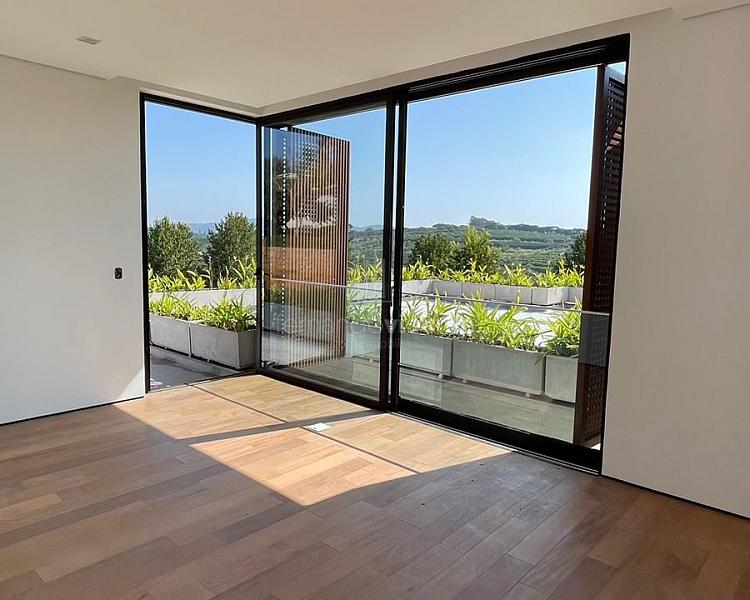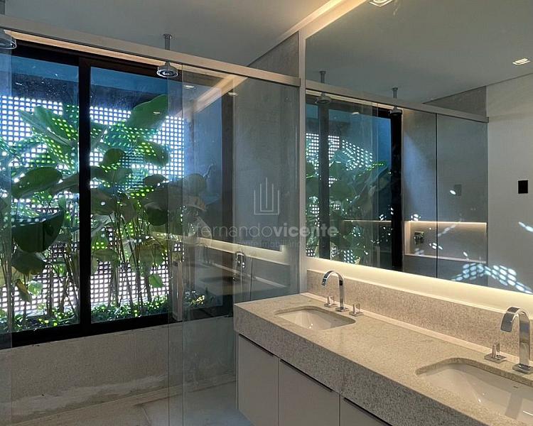 Destaques do projeto: caixilhos minimalistas, portas piso-teto em laca, sol na piscina o dia todo, dois amplos platôs com espaço para quadra, campinho e/ou playground, jardins internos e iluminação zenital garantindo bastante iluminação natural.
