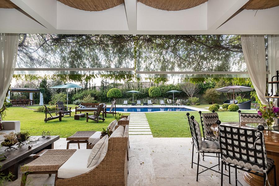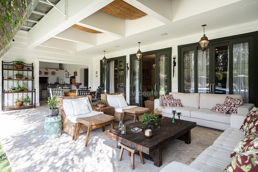 A área externa é um verdadeiro paraíso, com uma extensa varanda, uma bela churrasqueira e uma lareira que tornam os momentos ao ar livre ainda mais agradáveis. A piscina com prainha é perfeita para se refrescar nos dias quentes e desfrutar de momentos de lazer em família.