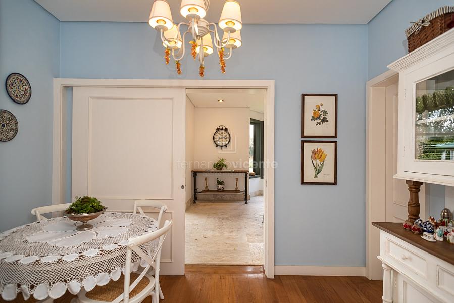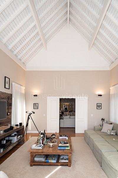 Os ambientes da casa são iluminados e arejados, graças às portas-camarão e janelas que permitem a entrada de luz natural. O pé-direito alto reforça a sensação de tranquilidade e sossego, proporcionando um ambiente acolhedor e convidativo.