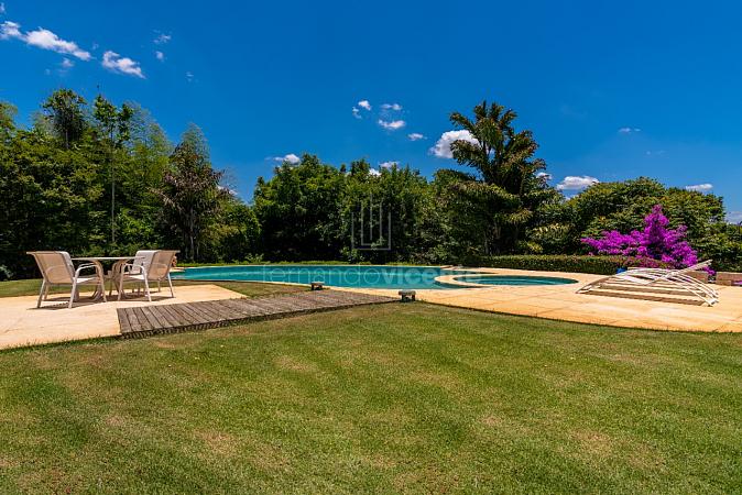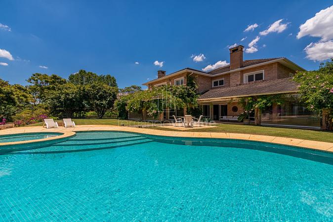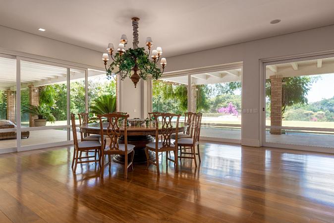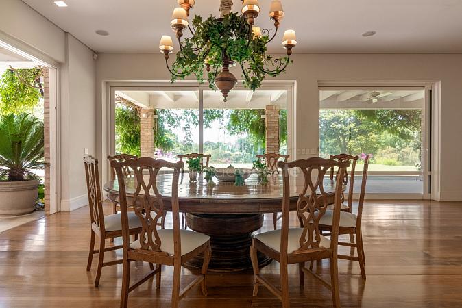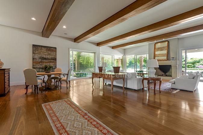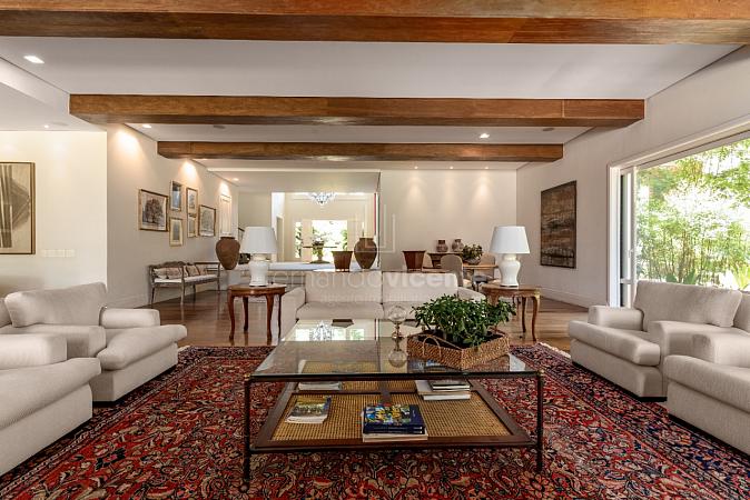 Residência à venda no Condomínio Quinta da Baroneza com vista para o Campo de Golf. Com um estilo de arquitetura clássica, a elegância se faz presente com ambientes que se integram à decoração assinada por Toninho Noronha.