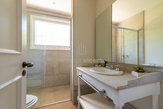 7 suítes (1 no Térreo e 6 na parte superior , amplo closet na suíte máster), Lavabo, Elevador, sala com lareira, sala integrada com espaço gourmet, escritório, varanda, piscina com spa aquecido, cozinha, área de serviço, aquecimento (gás, solar e elétrico), ar condicionado em todos os dormitórios, irrigação e garagem com 4 vagas.