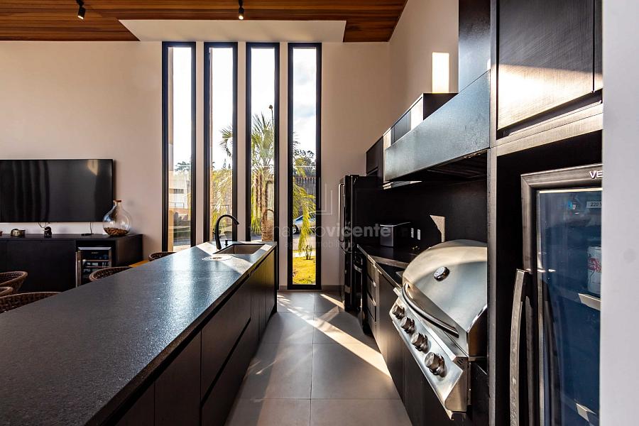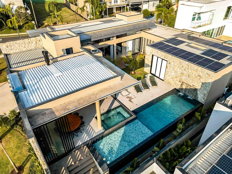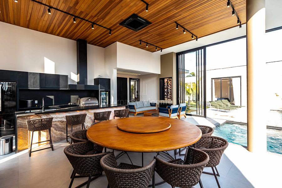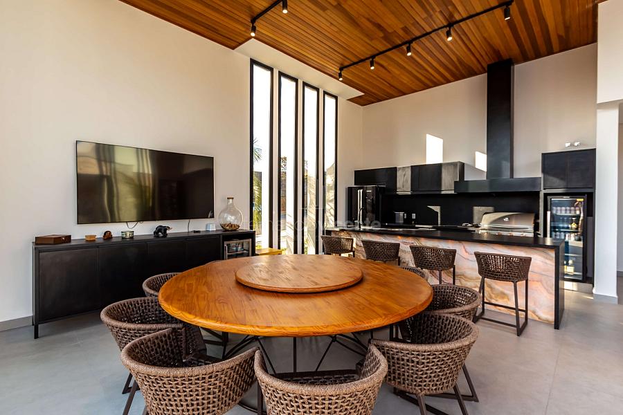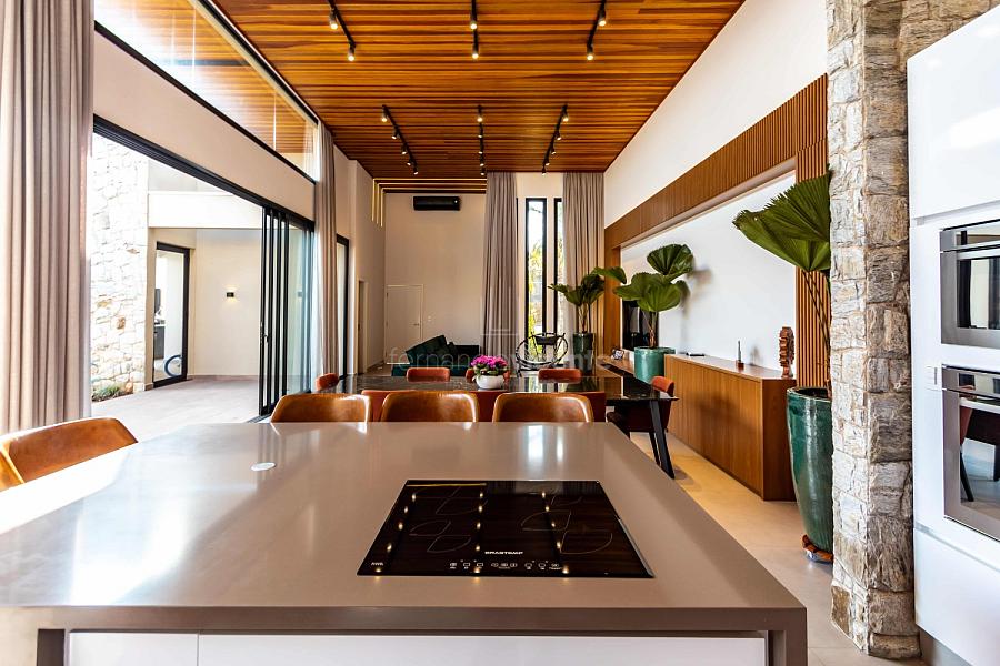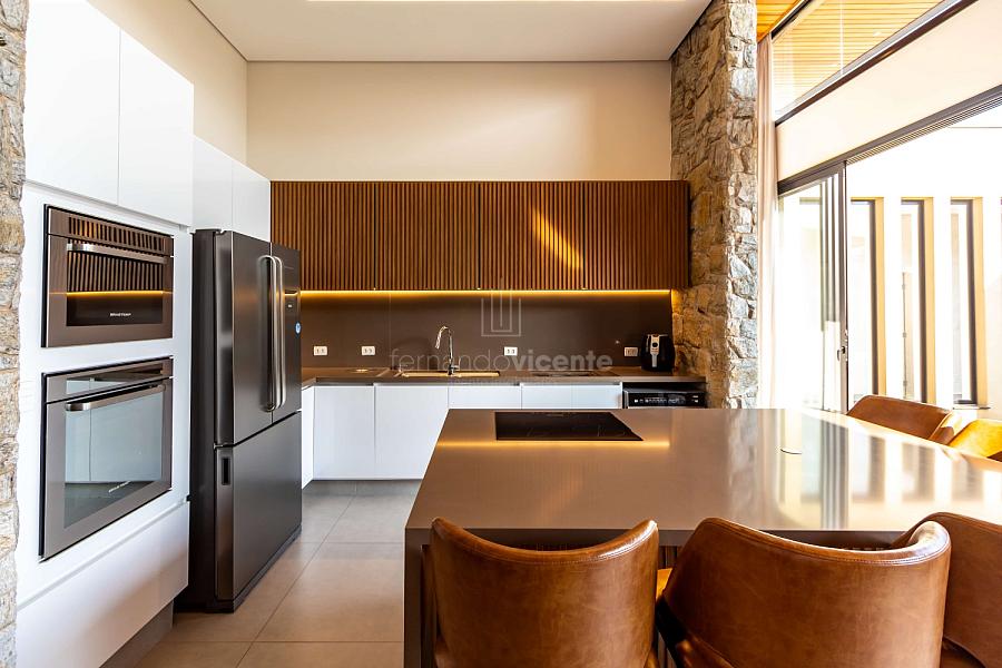 A cozinha é um paraíso para os amantes da culinária, equipada com fogão por indução e eletrodomésticos Brastemp Gourmand. E o melhor de tudo, a energia fotovoltaica com capacidade de 1330kw alimenta todos os aspectos desta residência, incluindo um spa e uma piscina aquecidos por trocador de calor.