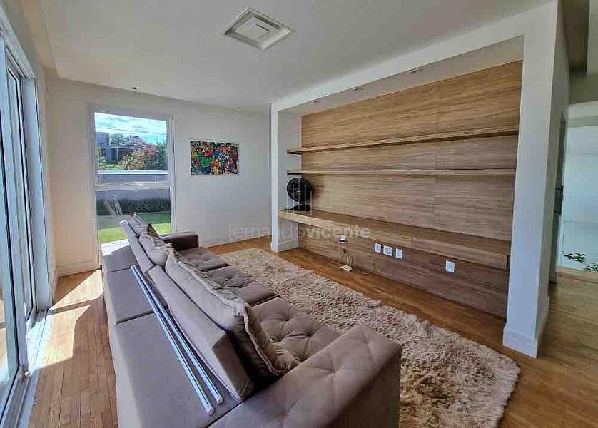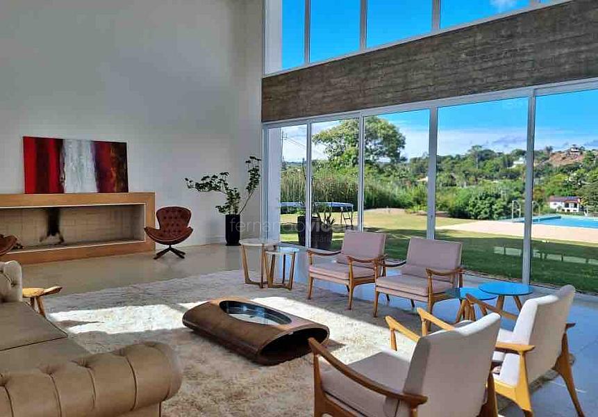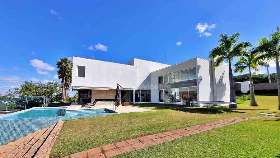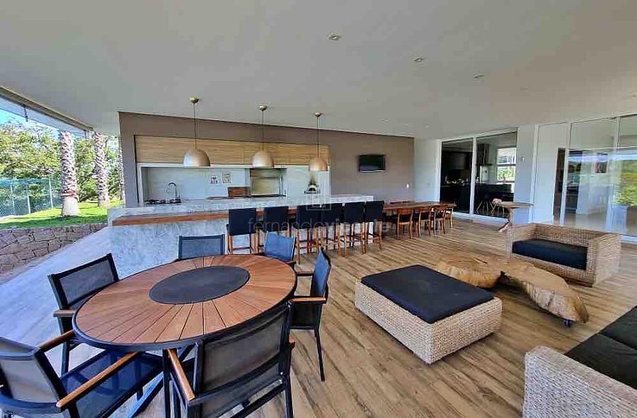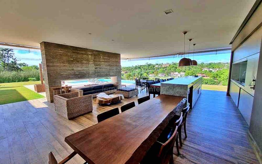 Casa Vista – Vale das Laranjeiras – Indaiatuba – PORTEIRA FECHADA AC - 674 m² AT - 3.020 m² 5 suítes 3 vagas cobertas e 10 descobertas Porteira fechada O que dizer desta vista para o lago e para a mata do condomínio? Simplesmente espetacular!! A casa, construída há apenas 7 anos, com projeto arquitetônico de Raul Penteado e Renata Boccia, é simplesmente linda, com seus janelões na sala com pé direito duplo e seus vãos livres que dão uma sensação de amplitude e uma vista deslumbrante. Na área de estar, amplo living com lareira, lavabo, sala de jantar, cozinha com espaço para refeições rápidas e despensa e home Theather super aconchegante. Tudo em piso de porcelanato. A área de lazer é o ponto alto: área gourmet completa com churrasqueira, forno de pizza, fogão, cervejeira, piscina aquecida com deck molhado e borda infinita e vestiário. Um lindo gramado – onde se pode ter inclusive uma quadra de Beach tennis, quadra poliesportiva, pomar e horta. Um fire pit e uma pista de bicicleta no entorno de todo o terreno completam a área de lazer. Todos os ambientes são decorados com móveis de bom gosto e qualidade. Subindo por uma escada flutuante de madeira e vidro, temos uma sala íntima com lavabo e terraço, que pode ser o espaço do home office, e as 5 suítes super completas com persianas elétricas, ar condicionado e planejados sendo 4 delas com varanda. A master tem closet e sala de banho com cubas e chuveiros duplos. Tudo em piso de taco de madeira para maior conforto. Lavanderia, suíte de funcionário, elevador pneumático, depósito, poço artesiano, fossa biodigestora, cabeamento de rede para automação e sistema de câmeras, portões automáticos, energia solar são mais algumas comodidades que a casa apresenta. A compra pode ser financiada e aceita-se permuta de 30% do valor.