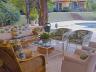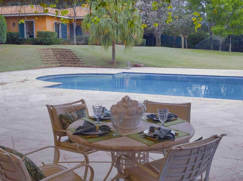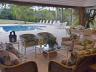 Os hospedes possuem total liberdade para definir o local de refeição, mas normalmente para os proprietários é servido o almoço na área da piscina que possui três mesas de 4 lugares cada para 12 pessoas.