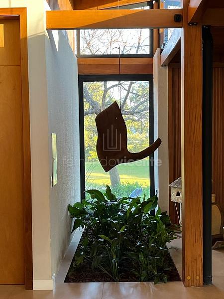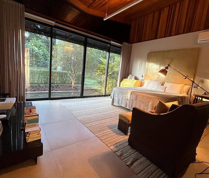 Localização privilegiada em rua sem saída e próxima as áreas de lazer, a propriedade possui 3 (três) terrenos planos. Caminhar internamente pela casa, mantém a sensação de integração com a área externa, uma vez que as suntuosas portas de vidro possibilitam que o jardim seja contemplado por todo o seu interior. Vale ressaltar ainda que cada quarto tem uma saída privativa para o jardim.