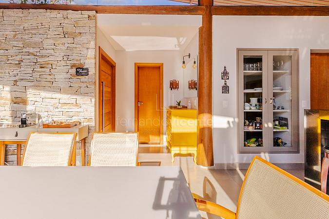 Esta espetacular casa dispõe de 4 quartos sendo 3 suítes no corpo principal e a quarta suíte reversível para hospedes no anexo em frente a área de lazer. A casa é ampla, livings com pé direito duplo e cozinha com despensa. Também conta com lavabo e área de serviço com acesso independente.