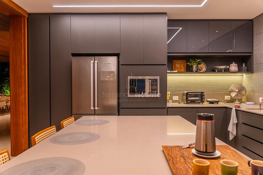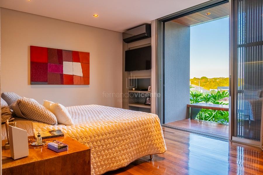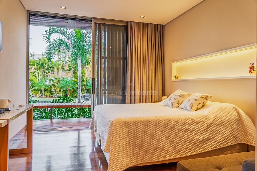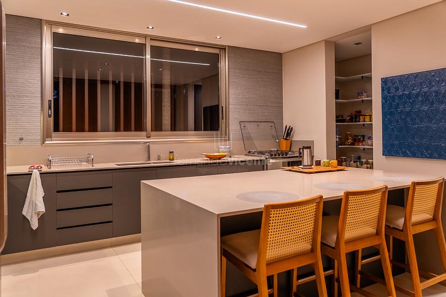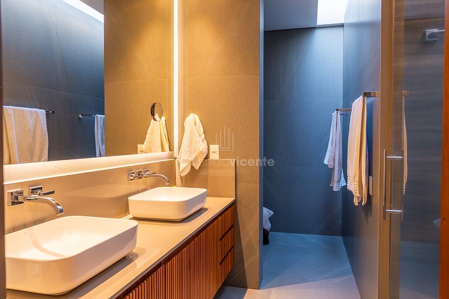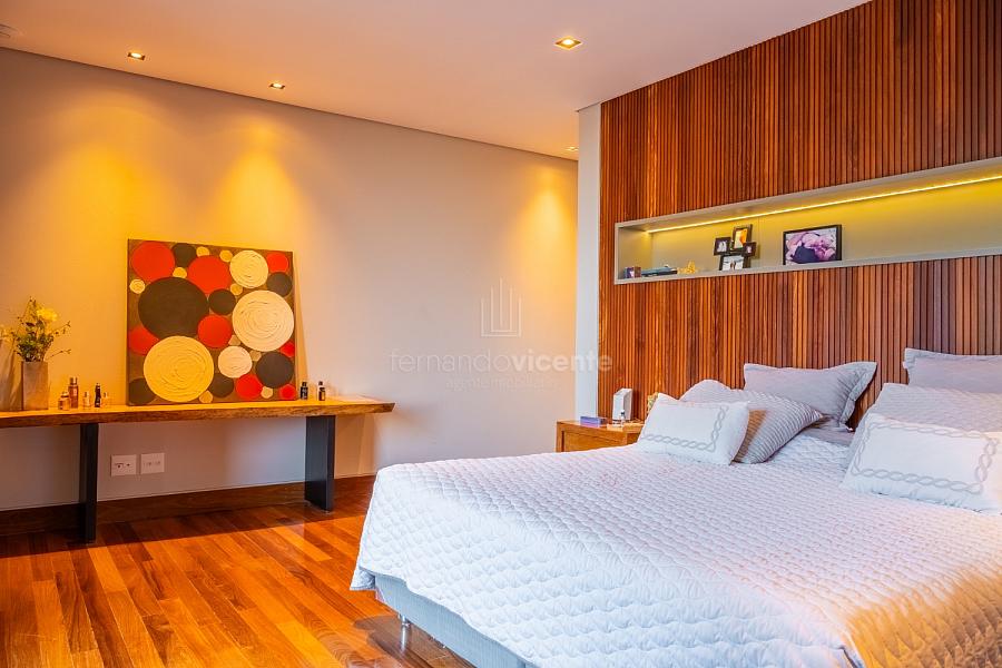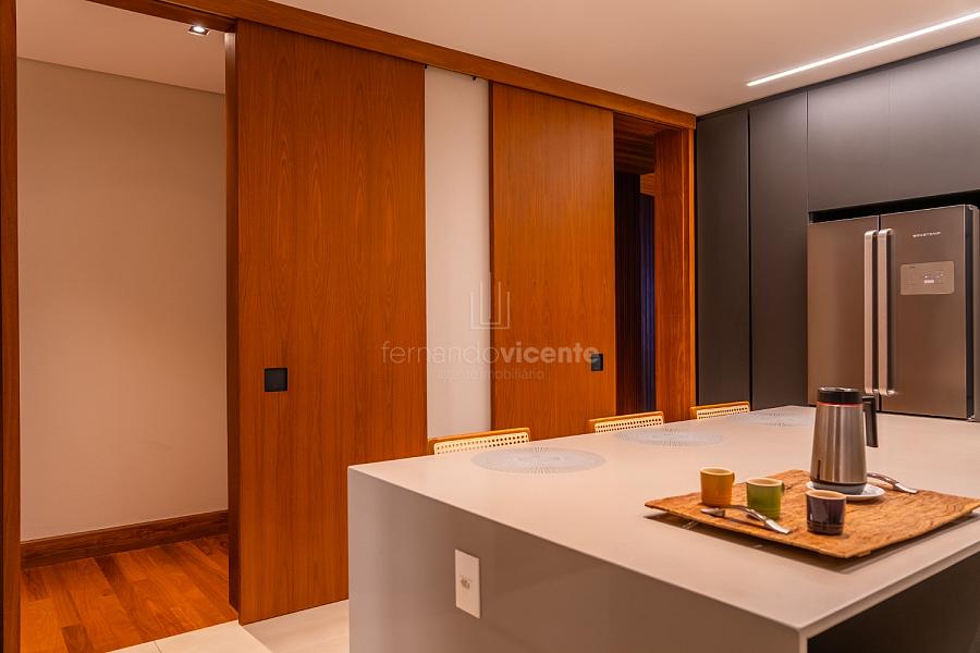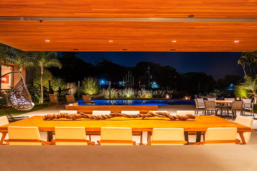 As quatro suítes são verdadeiros santuários particulares, com varandas e piso de madeira cumaru, perfeitas para desfrutar da paisagem. Lá fora, o deslumbrante paisagismo abraça a piscina, criando um oásis de tranquilidade. Venha conhecer e se apaixonar pelo seu novo lar!