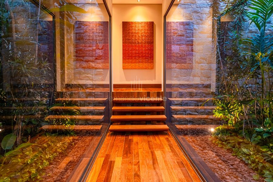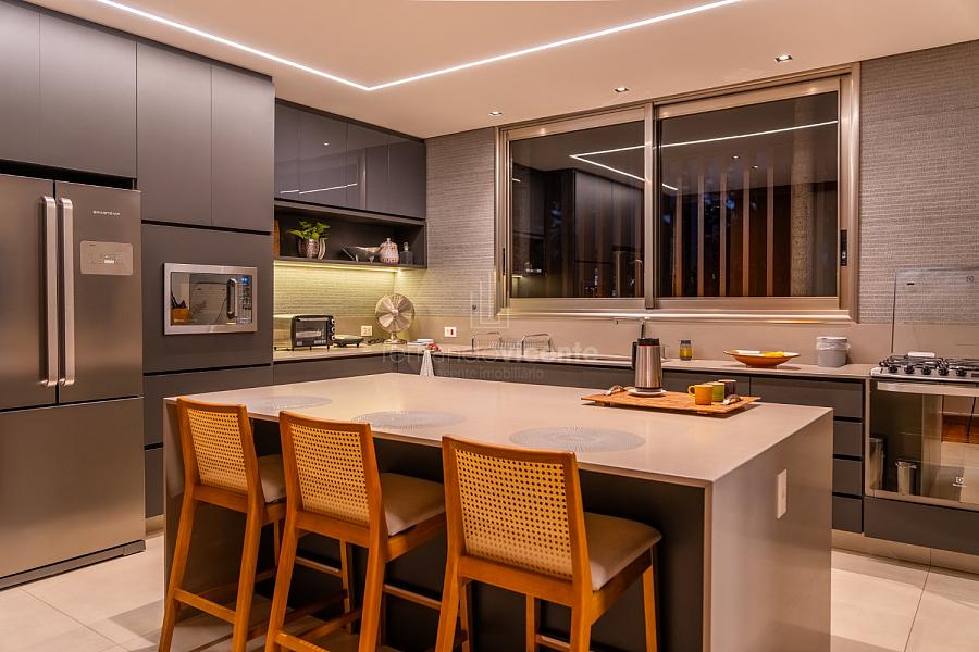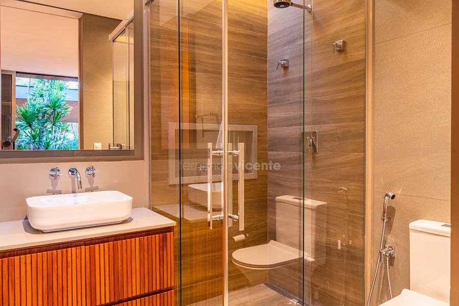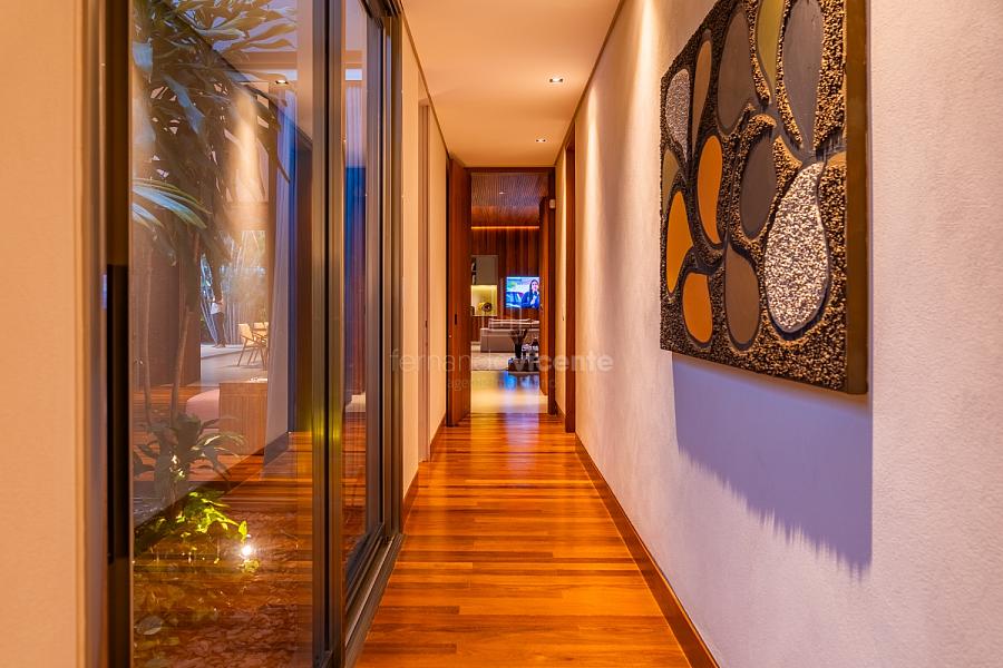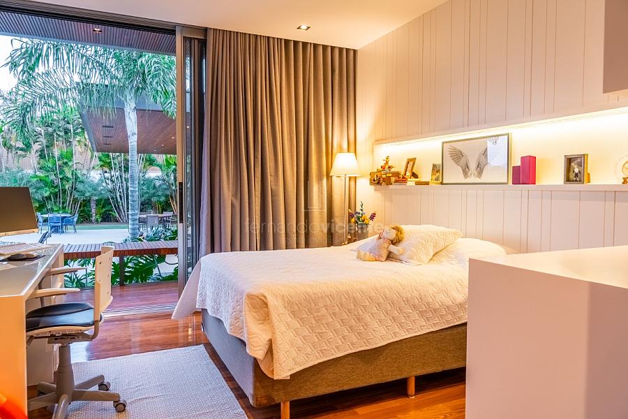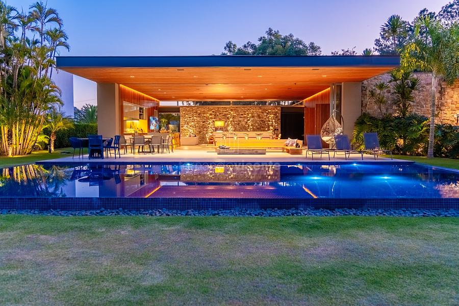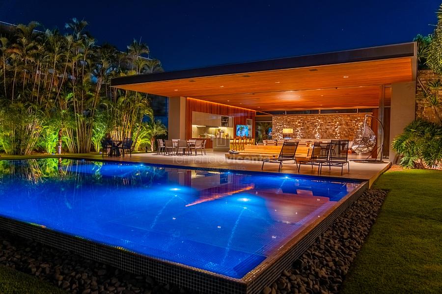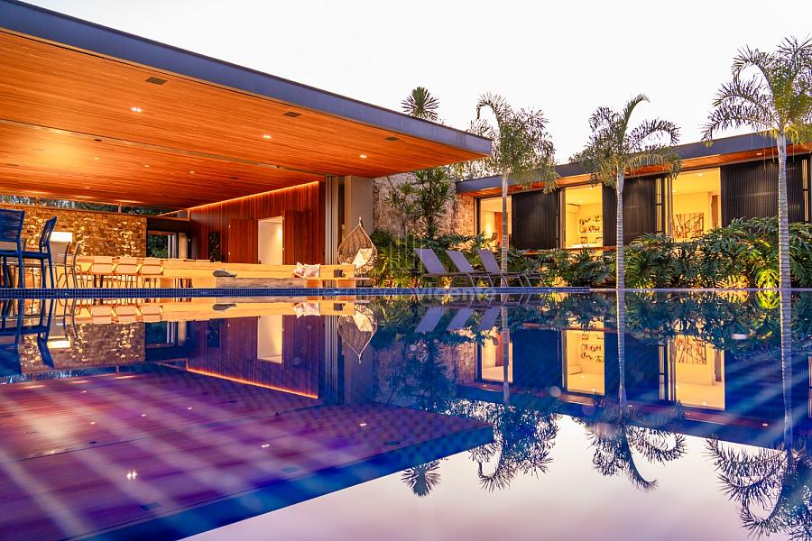 As quatro suítes são verdadeiros santuários particulares, com varandas e piso de madeira cumaru, perfeitas para desfrutar da paisagem. Lá fora, o deslumbrante paisagismo abraça a piscina, criando um oásis de tranquilidade. Venha conhecer e se apaixonar pelo seu novo lar!