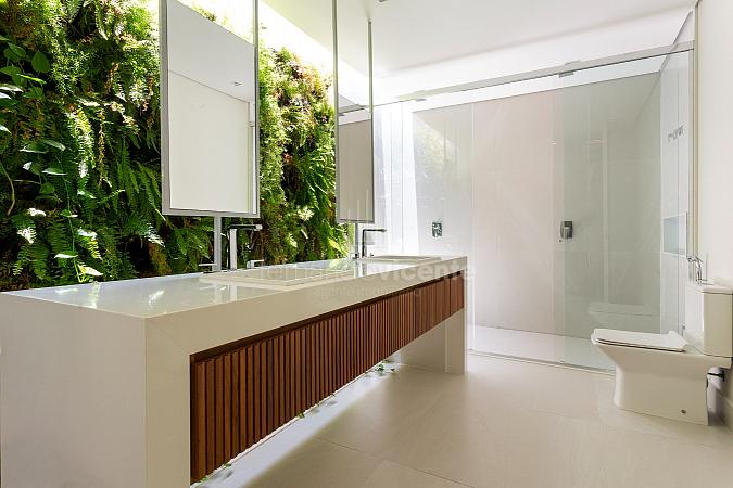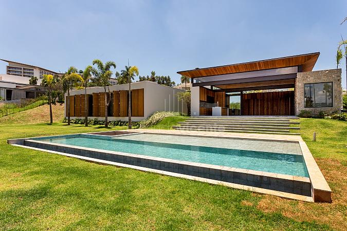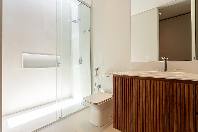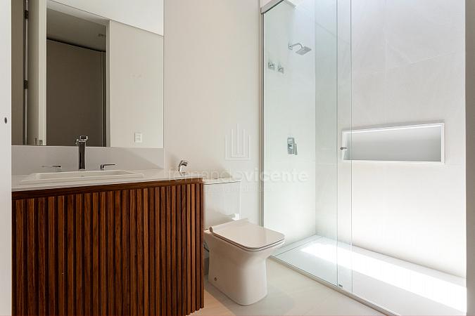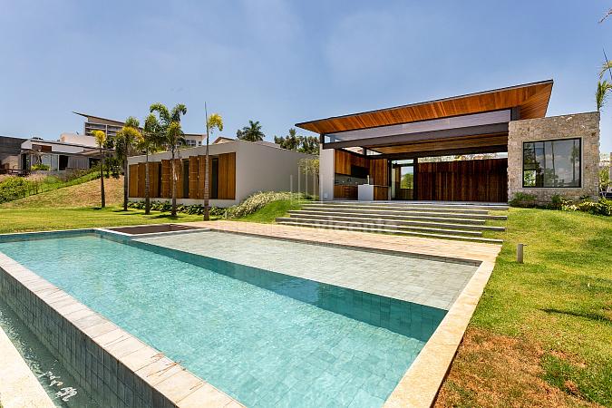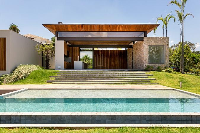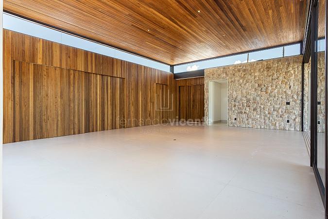 Esta deslumbrante casa dispõe de 5 suítes, ampla sala 2 ambientes e cozinha com bancada para refeições rápidas. Também conta com adega, lavabo e área de serviço com acesso independente.