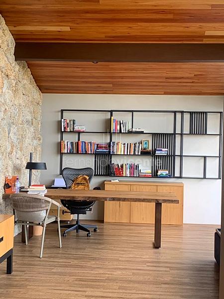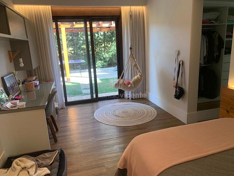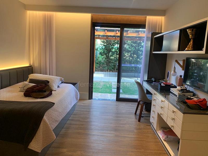 São 5 suítes amplas, todas com armários planejados, garantindo organização e praticidade. No piso superior, um escritório com varanda oferece um ambiente privativo e inspirador para quem trabalha em home office.