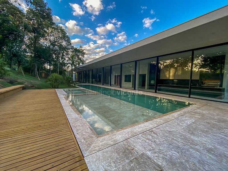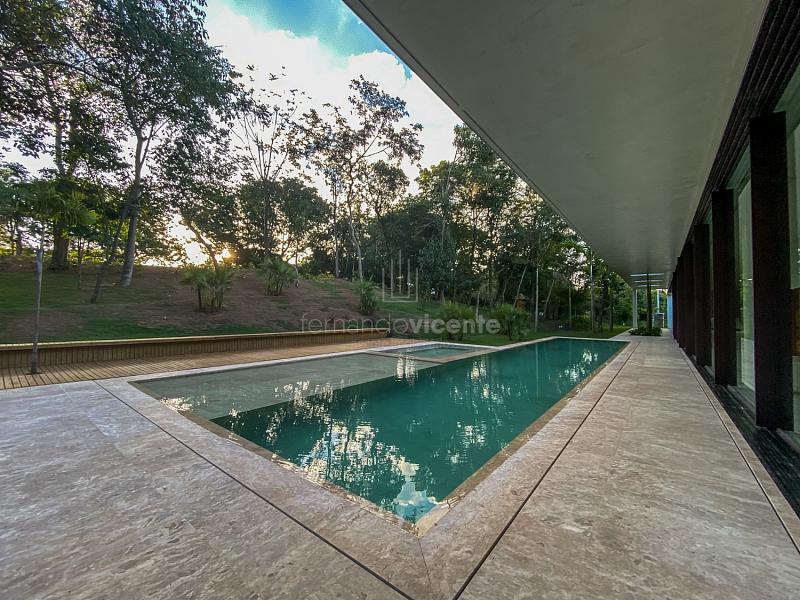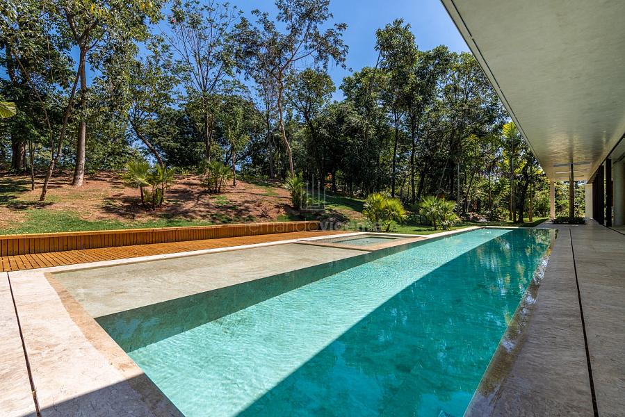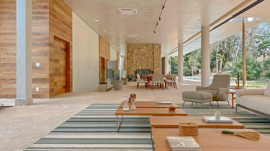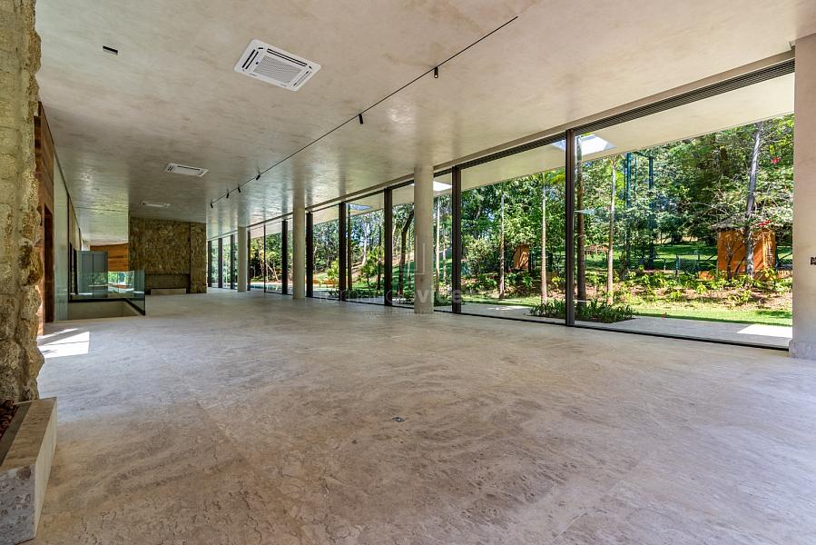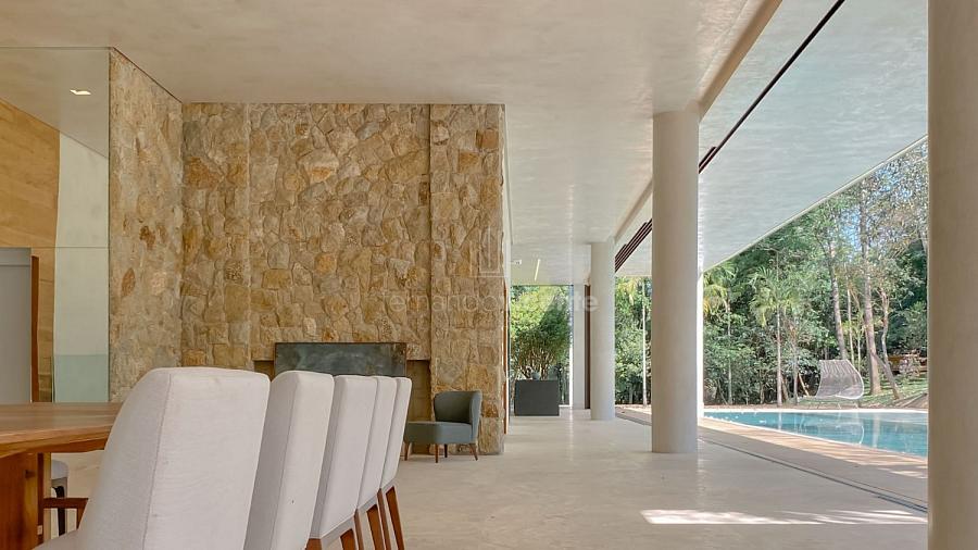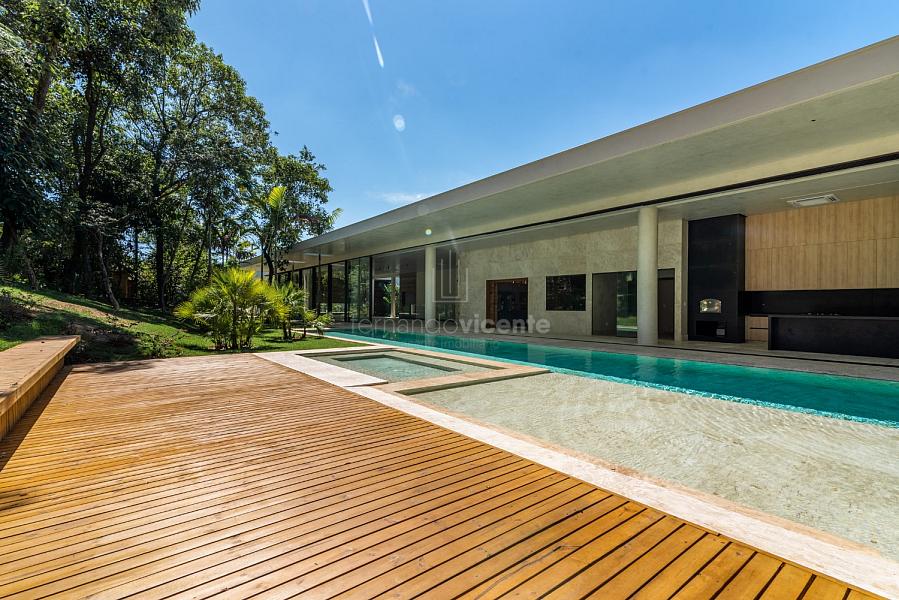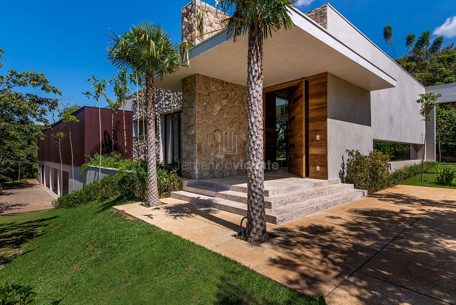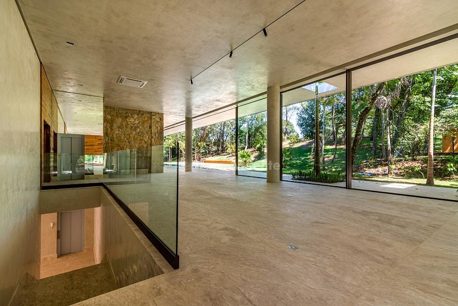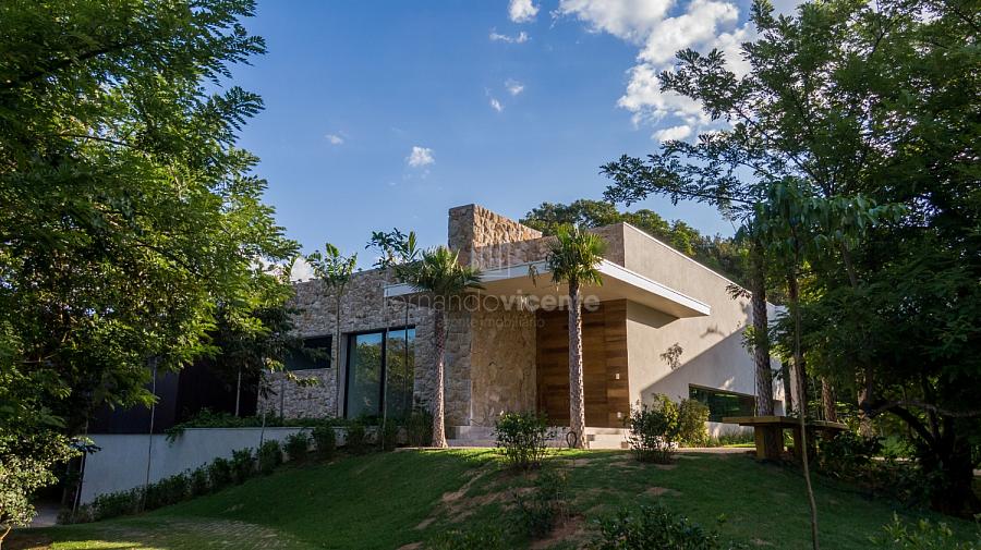 Casa contemporânea, localizada no primeiro condomínios de luxo do país! Tem seu terreno debruçado à mata nativa, além do fundo para o golfe. Um belo imóvel que reúne tudo o que há de melhor para viver em paz, conforto, tranquilidade e qualidade de vida. O projeto soma 1300m² em sua maior área é totalmente plano, diferenciado por sua qualidade dos acabamentos. A casa é repleta de mármore travertino nacional, e mármore italiano em seus ambientes, metais Kohler, esquadrias de alumínio, muito vidro, pedras e madeira de demolição. São 5 confortáveis suítes, todas com armários e ar condicionado, ampla sala com varanda integrada a área gourmet. Possui elevador, adega, escritório, home theater, sauna e espaço fitness. Além da dependência de empregada, há também uma casa para caseiros. O projeto de paisagismo é assinado pelo renomado Alexandre Furcolin e o projeto de interiores pela talentosa Karina Afonso. Para conhecer mais detalhes, entre em contato com um dos nossos corretores!
