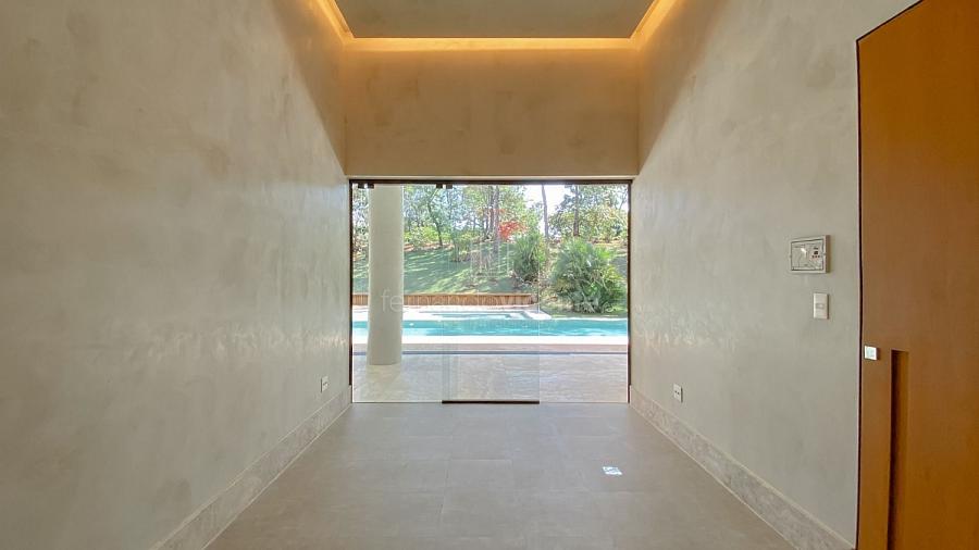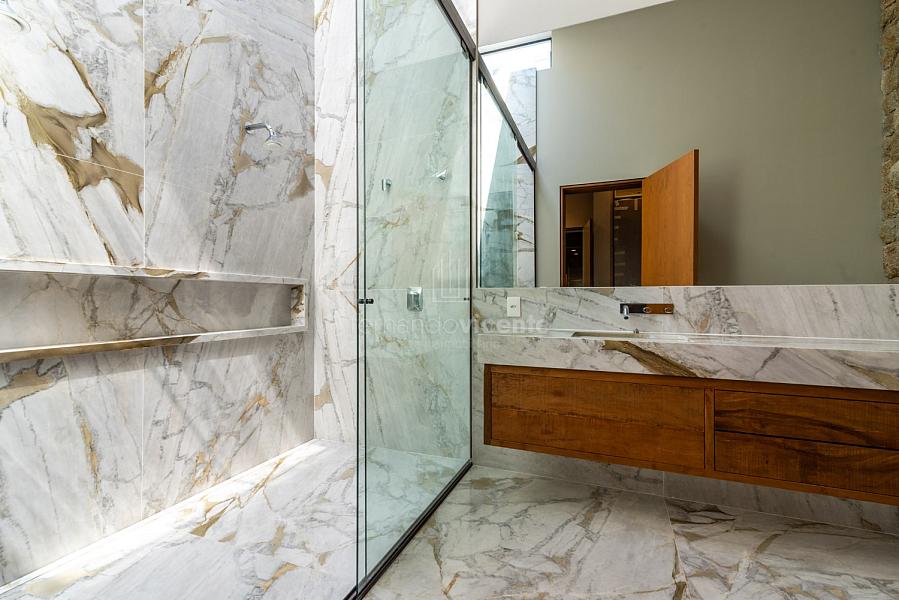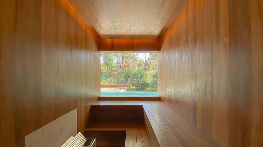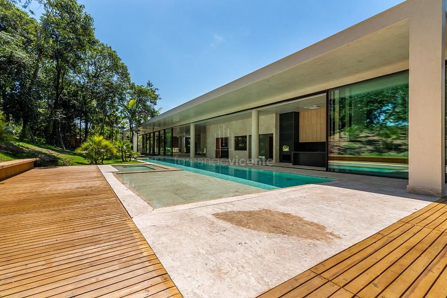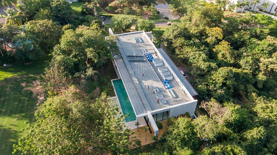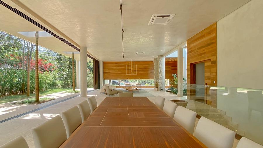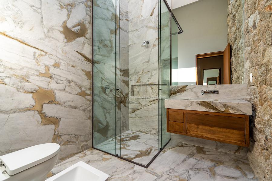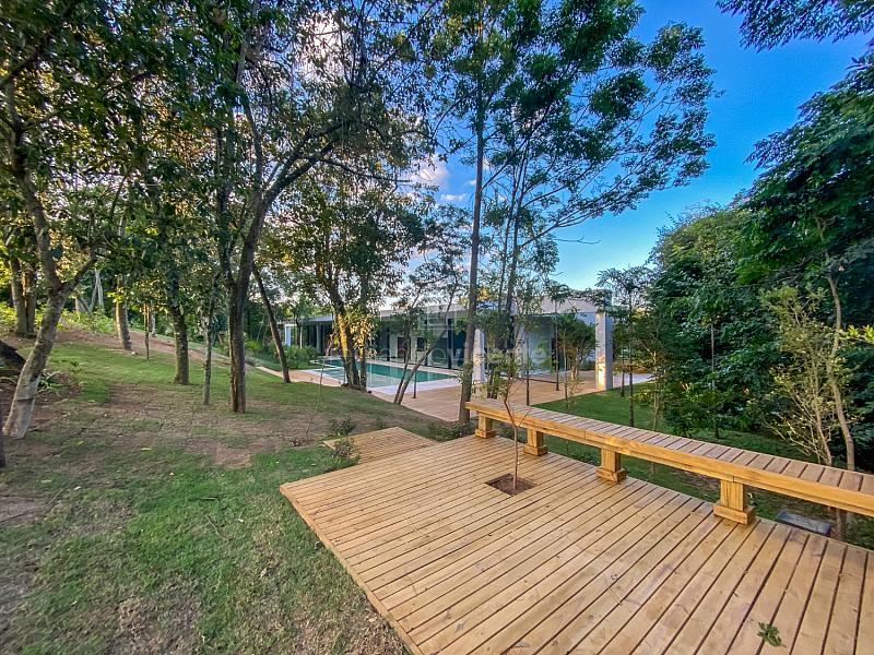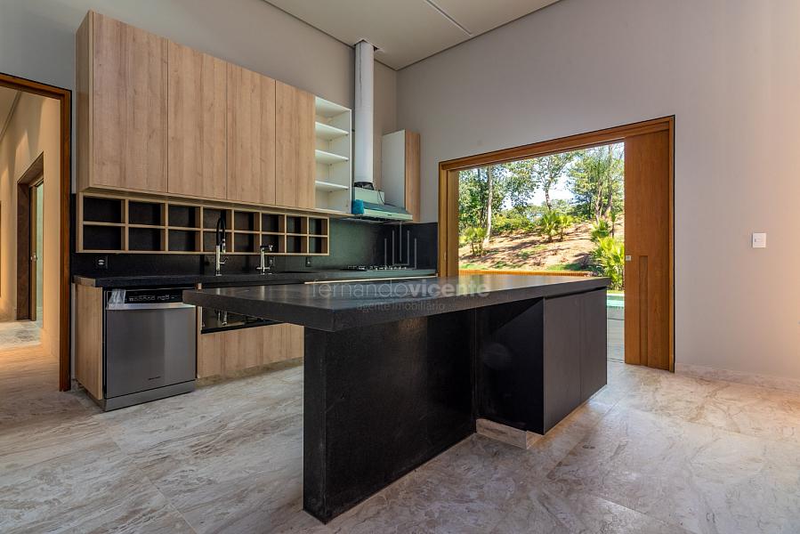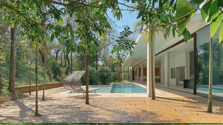 Casa contemporânea, localizada no primeiro condomínios de luxo do país! Tem seu terreno debruçado à mata nativa, além do fundo para o golfe. Um belo imóvel que reúne tudo o que há de melhor para viver em paz, conforto, tranquilidade e qualidade de vida. O projeto soma 1300m² em sua maior área é totalmente plano, diferenciado por sua qualidade dos acabamentos. A casa é repleta de mármore travertino nacional, e mármore italiano em seus ambientes, metais Kohler, esquadrias de alumínio, muito vidro, pedras e madeira de demolição. São 5 confortáveis suítes, todas com armários e ar condicionado, ampla sala com varanda integrada a área gourmet. Possui elevador, adega, escritório, home theater, sauna e espaço fitness. Além da dependência de empregada, há também uma casa para caseiros. O projeto de paisagismo é assinado pelo renomado Alexandre Furcolin e o projeto de interiores pela talentosa Karina Afonso. Para conhecer mais detalhes, entre em contato com um dos nossos corretores!