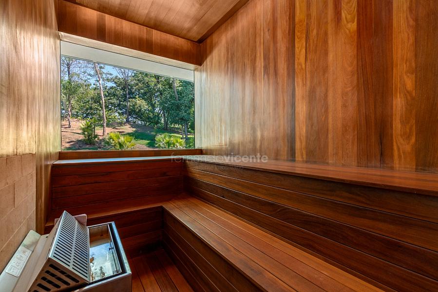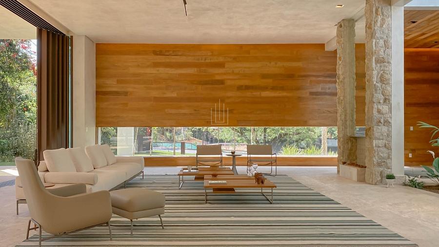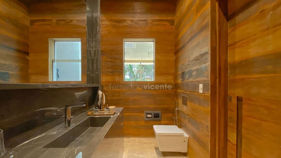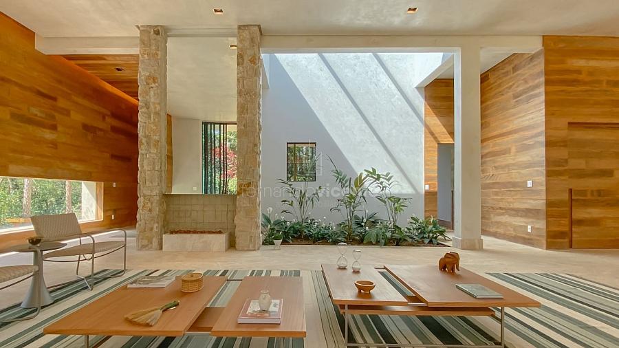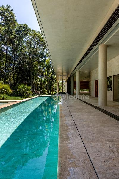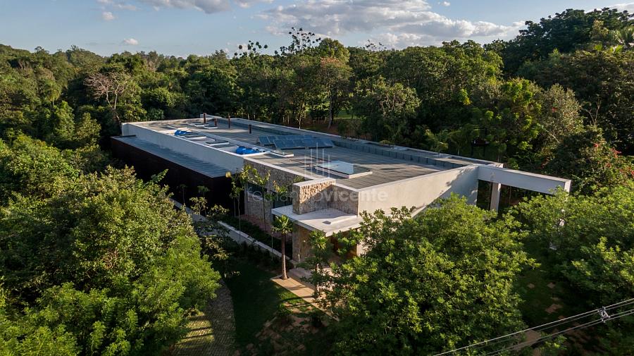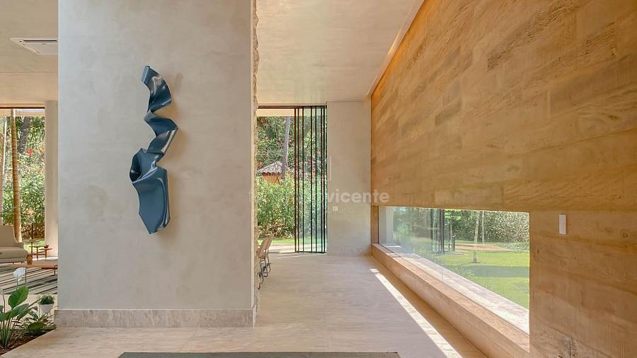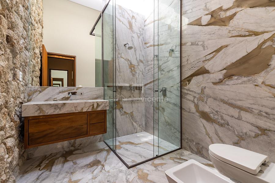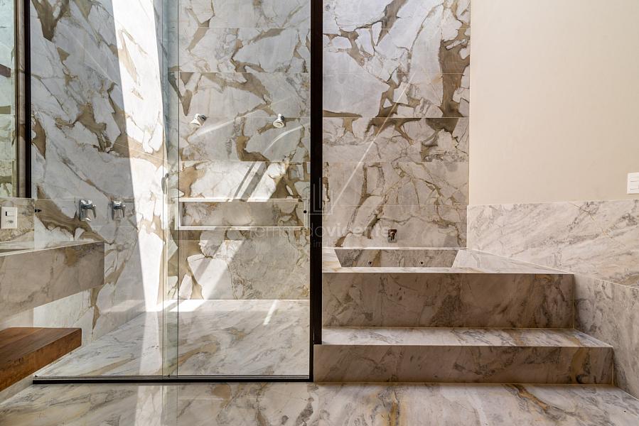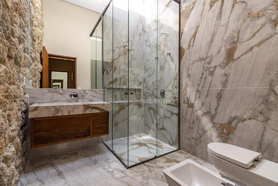 Casa contemporânea, localizada no primeiro condomínios de luxo do país! Tem seu terreno debruçado à mata nativa, além do fundo para o golfe. Um belo imóvel que reúne tudo o que há de melhor para viver em paz, conforto, tranquilidade e qualidade de vida. O projeto soma 1300m² em sua maior área é totalmente plano, diferenciado por sua qualidade dos acabamentos. A casa é repleta de mármore travertino nacional, e mármore italiano em seus ambientes, metais Kohler, esquadrias de alumínio, muito vidro, pedras e madeira de demolição. São 5 confortáveis suítes, todas com armários e ar condicionado, ampla sala com varanda integrada a área gourmet. Possui elevador, adega, escritório, home theater, sauna e espaço fitness. Além da dependência de empregada, há também uma casa para caseiros. O projeto de paisagismo é assinado pelo renomado Alexandre Furcolin e o projeto de interiores pela talentosa Karina Afonso. Para conhecer mais detalhes, entre em contato com um dos nossos corretores!