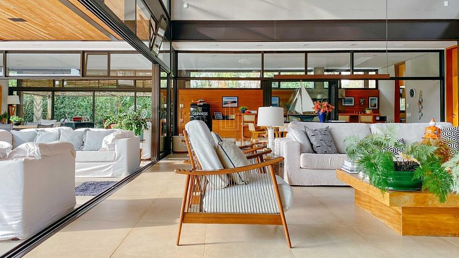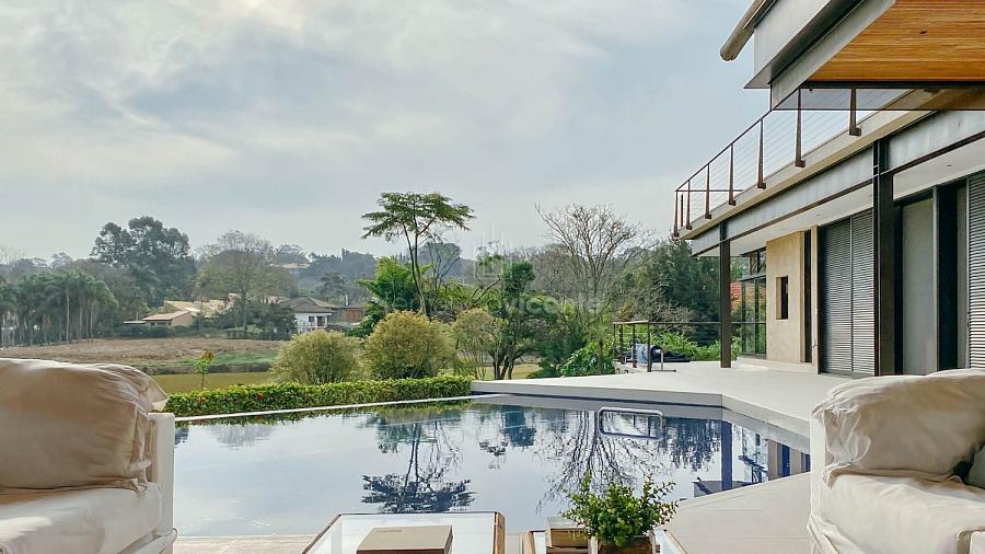 Esta espetacular casa de campo contemporânea, com projeto exclusivo assinado pelo renomado arquiteto George Mills, oferece uma combinação rara de sofisticação, privacidade e natureza em um terreno de quase 3.900 m². Localizada em uma rua reservada e tranquila, com poucos vizinhos, a propriedade privilegia o contato com o entorno natural, com fundo voltado para um lago encantador, onde é possível apreciar o skyline e o pôr do sol em um cenário de tirar o fôlego.