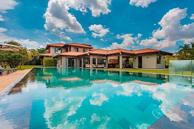 Ao todo são 650m² de área construída em um terreno de 2.100 metros, dispondo de salas de estar e jantar, lareira, home theater, lavabo e cozinha com ilha, adega para mais de 200 garrafas. Na área intima tem uma escritório mais 5 suítes aconchegantes com acesso a uma extensa o paisagismo, sendo a máster agraciada com um espaçoso closet. Já na área externa o repertório de lazer é preenchido por espaço gourmet, sauna e uma bela piscina com borda infinita. Há ainda quadra, beach tênis, fogo de chão para reunir e um paisagismo deslumbrante abraçando toda extensão da residência! Gostou? Então venha conhecer, envie uma mensagem e agende agora sua visita!