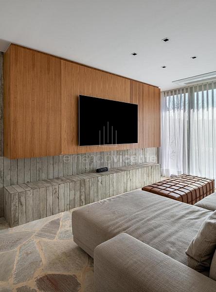 Ao todo são 650m² de área construída em um terreno de 2.100 metros, dispondo de salas de estar e jantar, lareira, home theater, lavabo e cozinha com ilha, adega para mais de 200 garrafas. Na área intima tem uma escritório mais 5 suítes aconchegantes com acesso a uma extensa o paisagismo, sendo a máster agraciada com um espaçoso closet. Já na área externa o repertório de lazer é preenchido por espaço gourmet, sauna e uma bela piscina com borda infinita. Há ainda quadra, beach tênis, fogo de chão para reunir e um paisagismo deslumbrante abraçando toda extensão da residência! Gostou? Então venha conhecer, envie uma mensagem e agende agora sua visita!