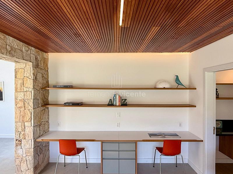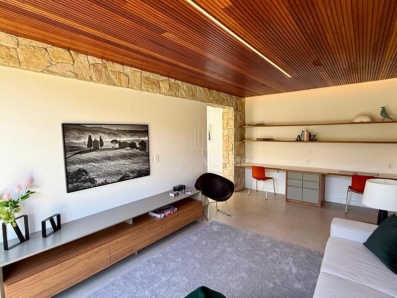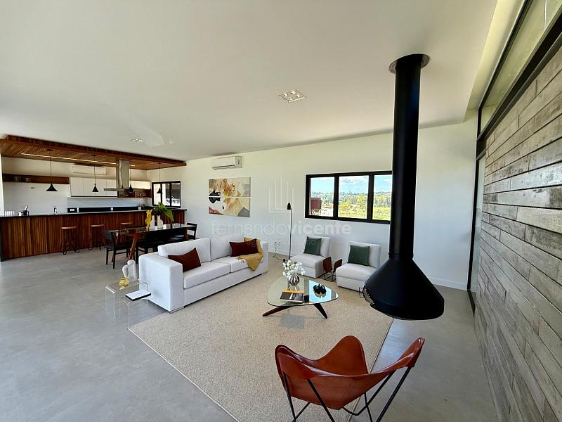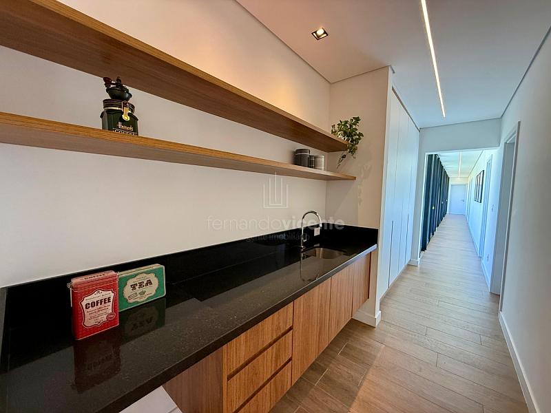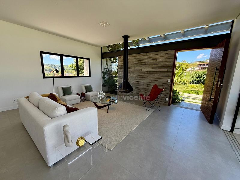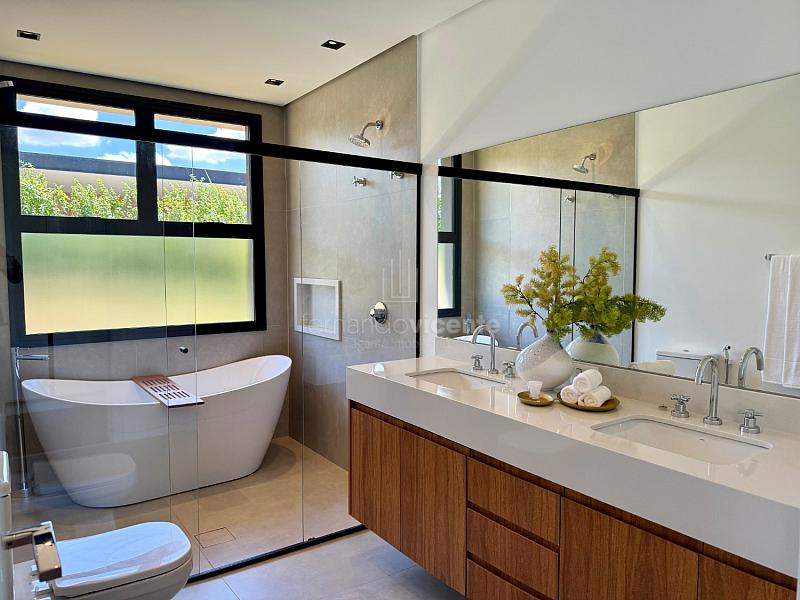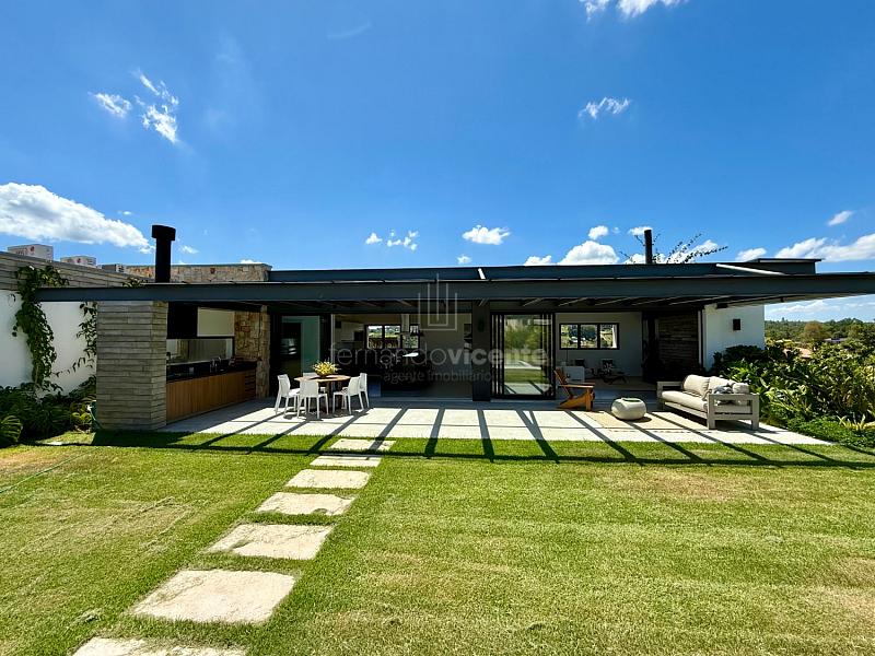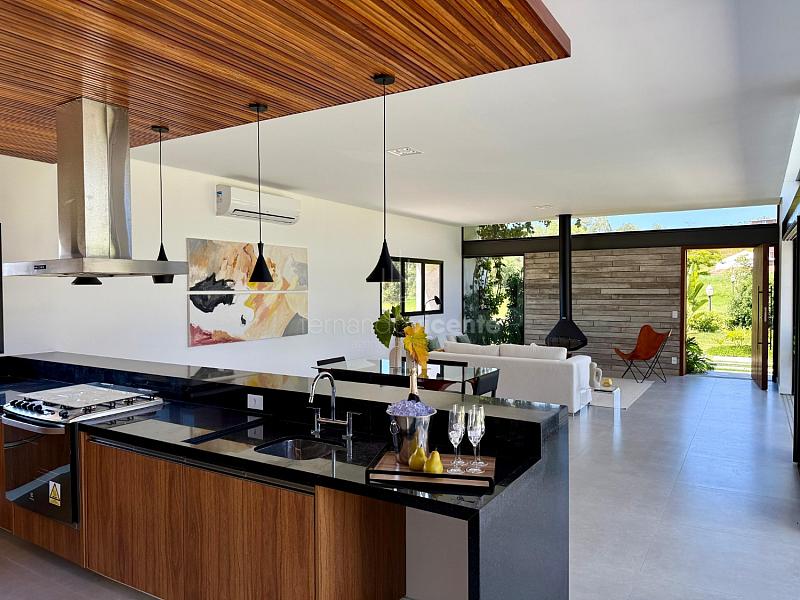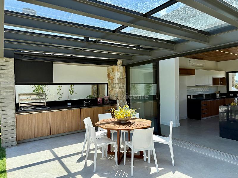 A casa dispõe de 5 suítes, sala de jantar e estar integradas à cozinha americana e sala de TV privativa com escritório. Bem como copa íntima, terraço gourmet, roupeiro e lavabo.