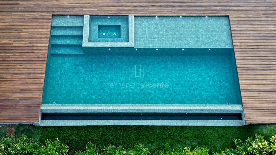 Seu quintal é um verdadeiro oásis de lazer. Um delicioso deck em madeira, antevêem uma piscina super convidativa, ela tem prainha, hidromassagem e borda infinita e vista livre para o horizonte, uma área extensa ao ar livre, muito gostosa!