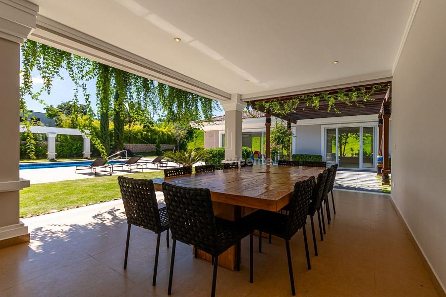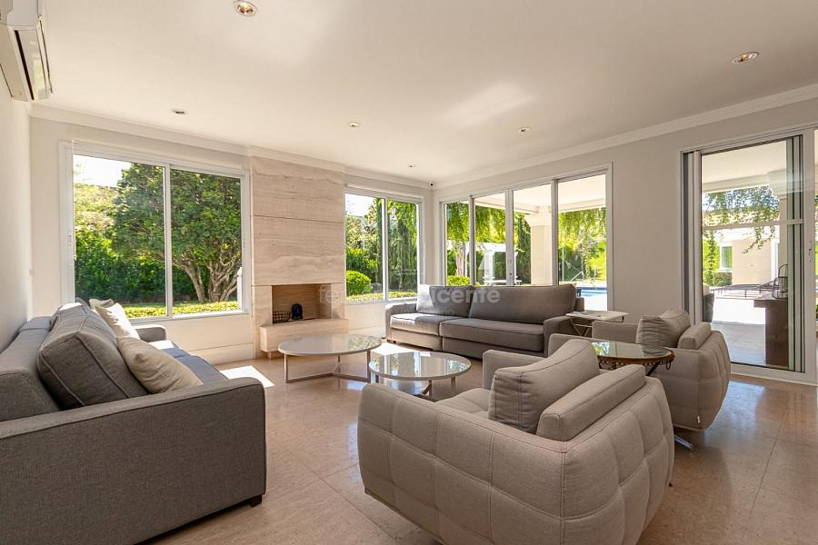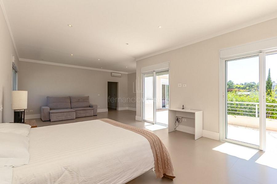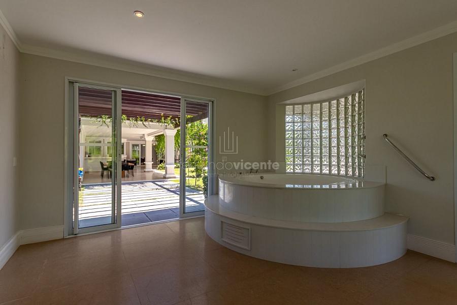 Em seu piso superior com 4 suítes climatizadas, com persianas automatizadas e varanda; mais 1 suíte master climatizada, com closet e 2 sacadas.