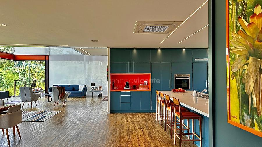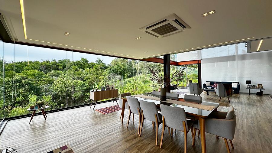 • Térreo: um amplo living integrado a três ambientes e uma cozinha em conceito aberto, com vistas deslumbrantes para a mata nativa.