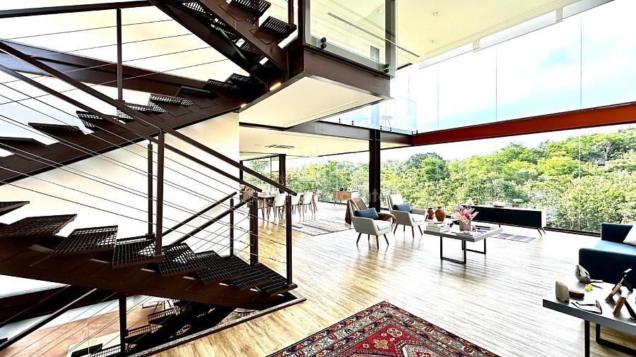 O projeto arquitetônico é ousado e contemporâneo, com estrutura metálica e acabamentos de altíssima qualidade, criando um ambiente jovem, sofisticado e funcional. A casa conta com elevador e permite expansão para quatro ou até cinco suítes, adaptando-se perfeitamente às suas necessidades.