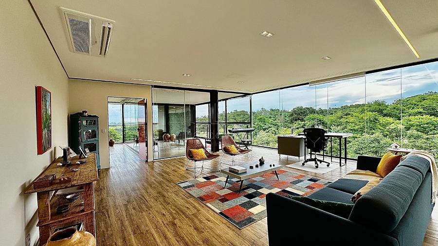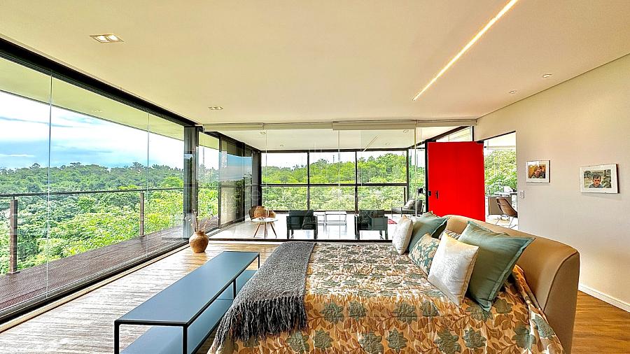 • Piso superior: a suíte máster é um verdadeiro espetáculo, com um panorama exclusivo. Além dela, duas salas espaçosas e uma varanda incrível oferecem ainda mais conexão com a natureza.