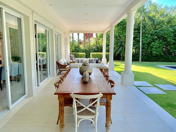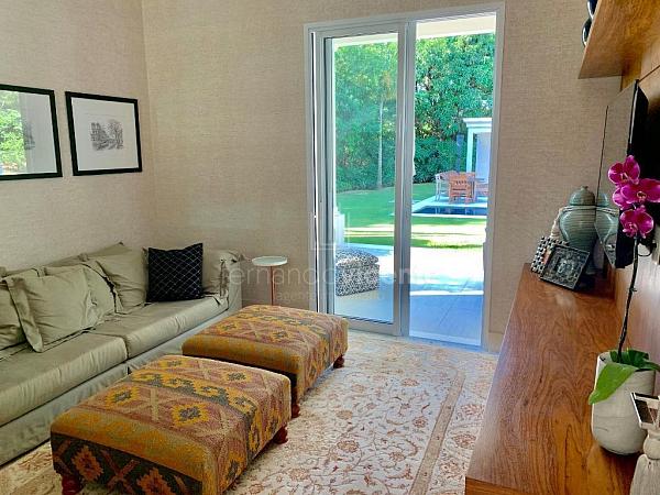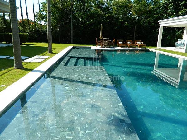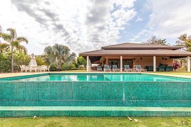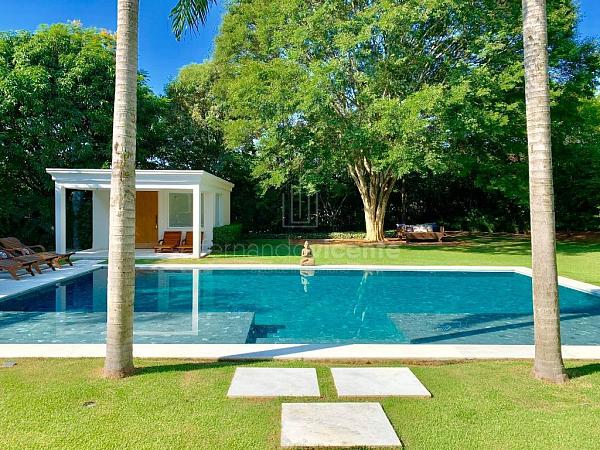 Já na área externa, usufrui de um extenso quintal gramado para os pets, piscina, sauna, espaço gourmet com churrasqueira a gás, ofurô coberto, um paisagismo único e garagem para até 9 carros.
