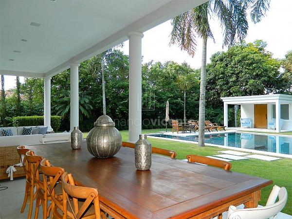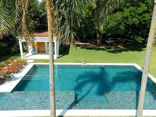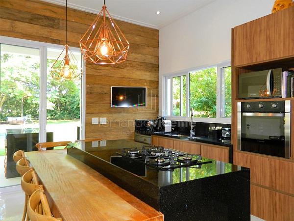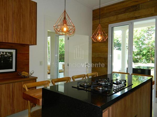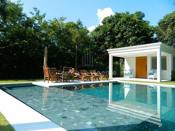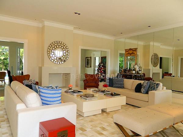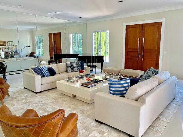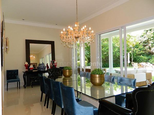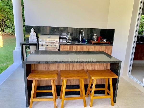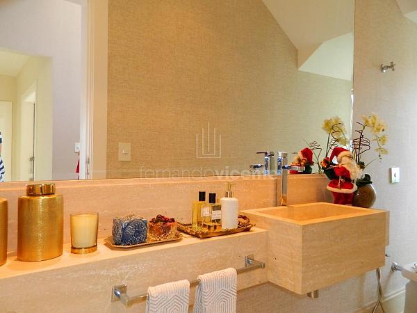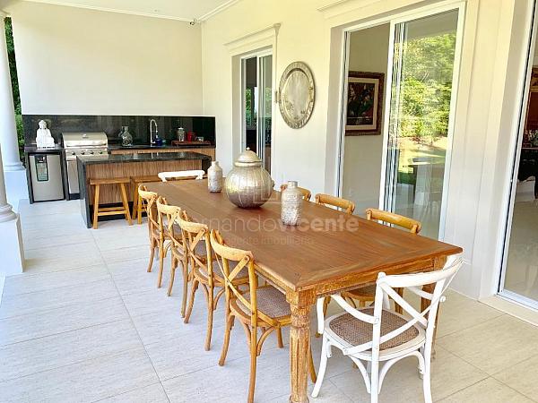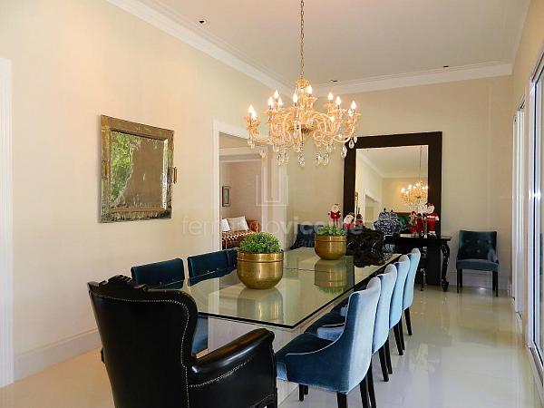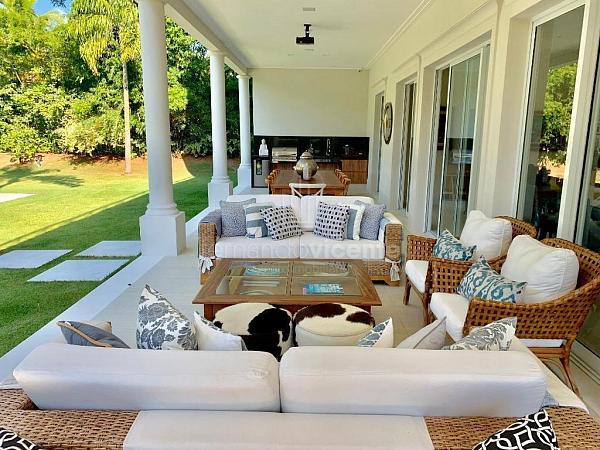 Contempla 5 amplas suítes, closet na suíte master, banheira e terraço com uma vista exclusiva para a área de preservação ambiental do condomínio. Além disso, possui salas totalmente integradas, lareira, home theater, cozinha com despensa, copa para refeições rápidas, área de serviço com acesso independente e dependência completa para funcionário(a).