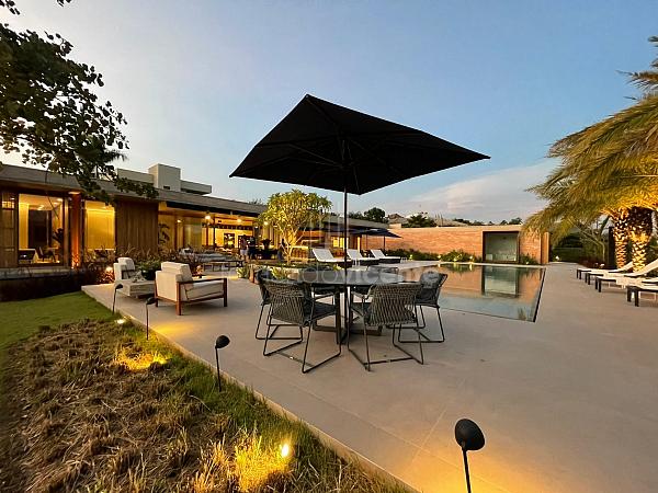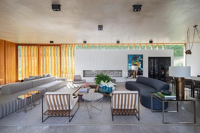 Casa deslumbrante na Fazenda Vila Real de Itu, toda mobiliada. projetado por ALN Arquitetos e reestilizado por Fabio Morozini. Totalmente térrea com os ambientes amplos estão cercados de portas e janelas generosas de vidro integrando a natureza, revestidos por acabamentos impecáveis e marcenaria única, têm a sua beleza acentuada pela passagem de muita luz natural. A arquitetura contemporânea evoca um clima sofisticado e descolado, com uma piscina super original, completando a experiência de estar ao ar livre, cercado de plantas e lindo paisagismo de Catê Poli..