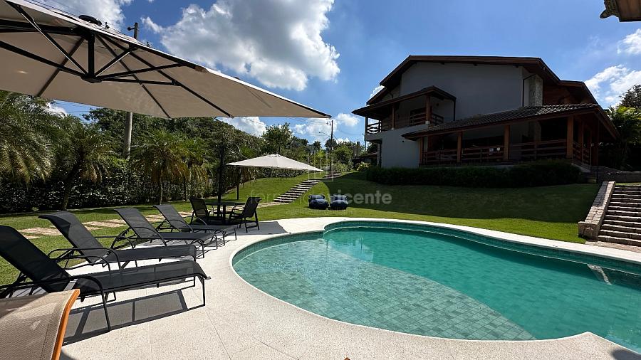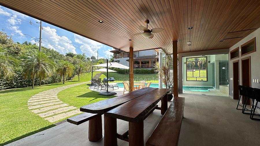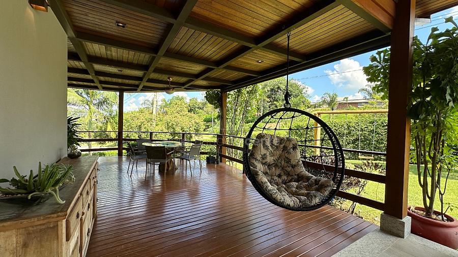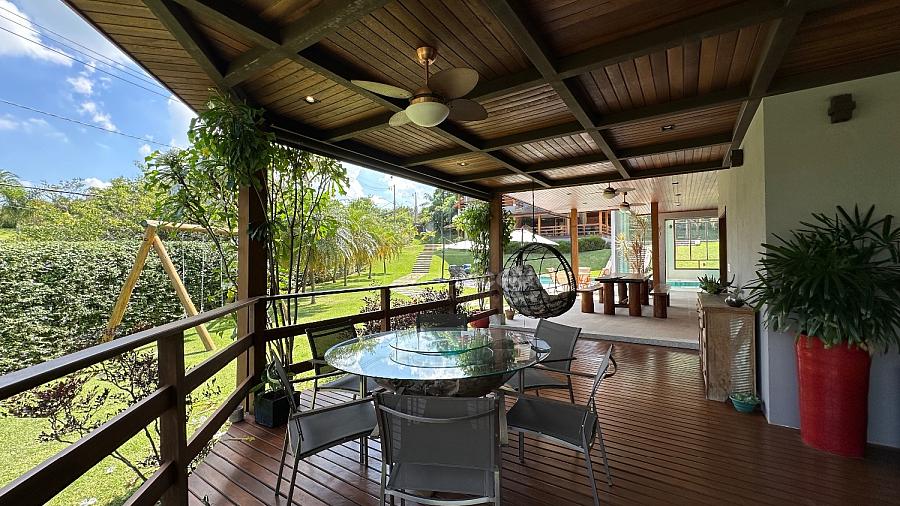 Na parte externa da casa temos um espaço gourmet completo: churrasqueira, forno de pizza, sala de jogos ou TV e um charmoso deck de madeira para completar. Bem como linda piscina, spa privativo, sauna úmida e muito jardim.