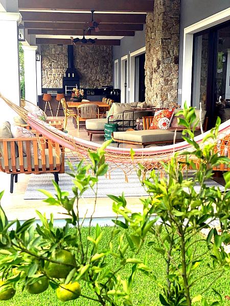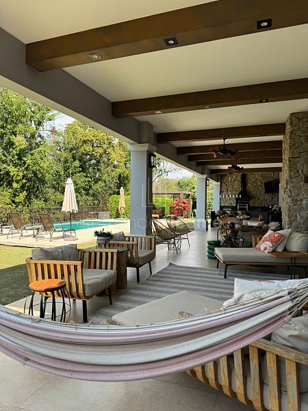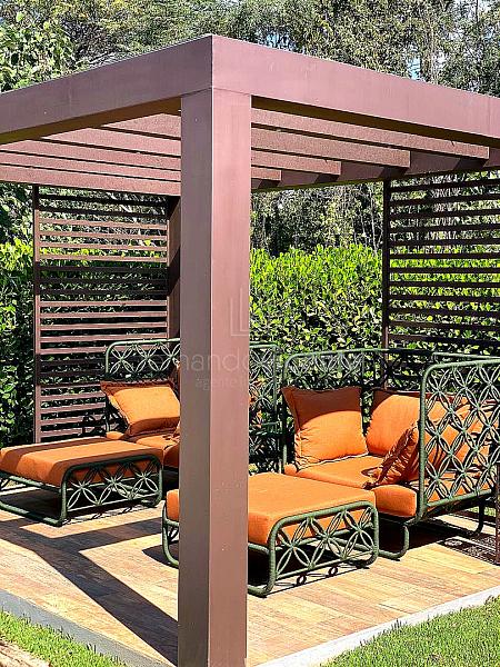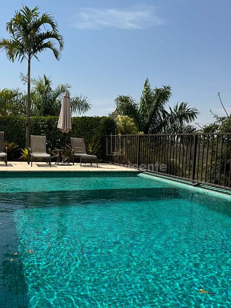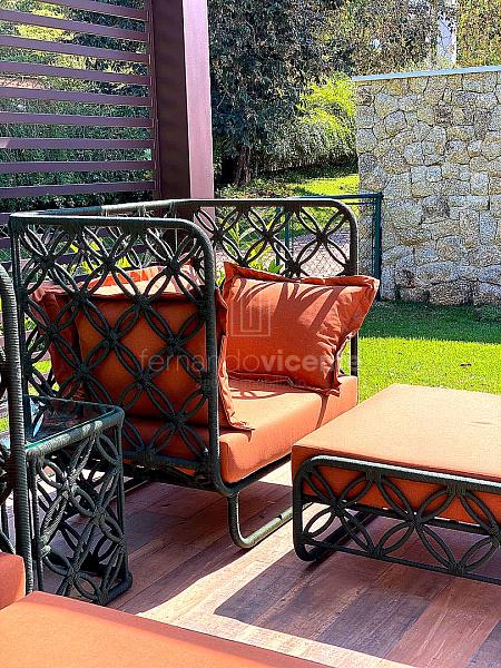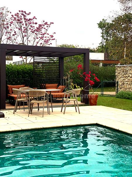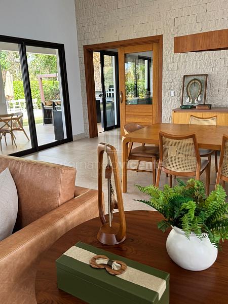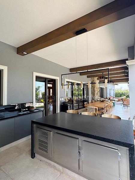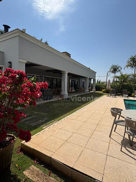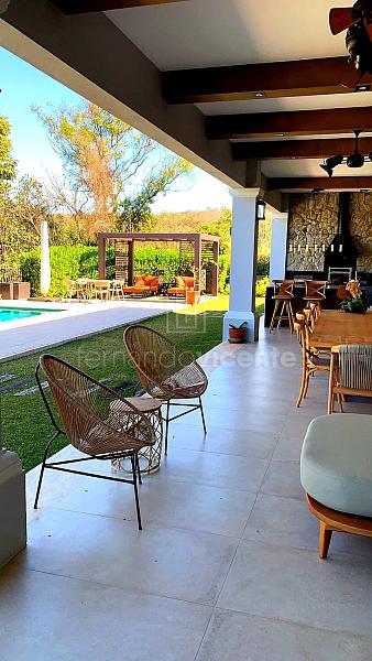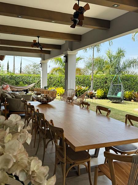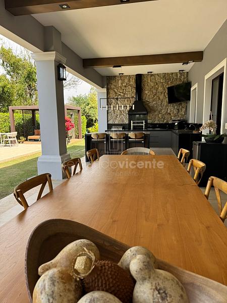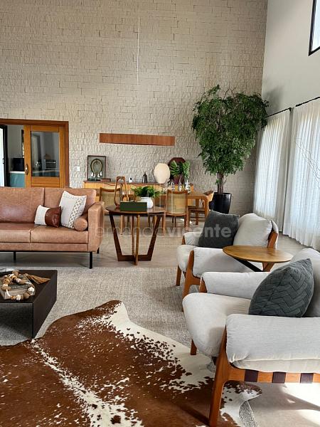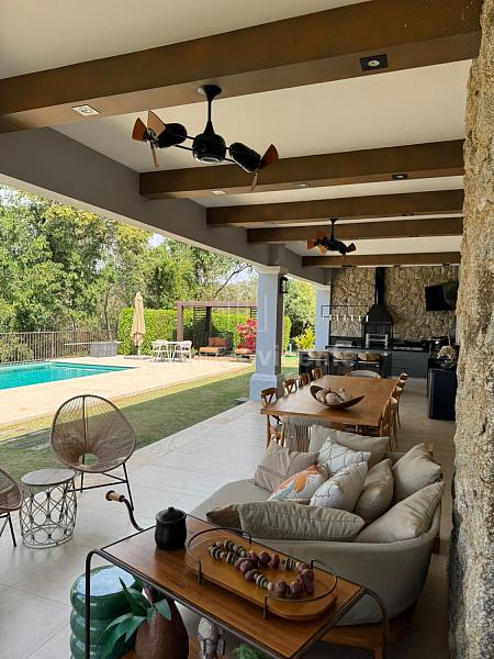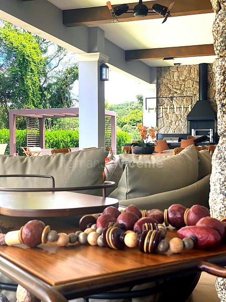 Esta residência térrea, com mais de 500m² de pura sofisticação, foi projetada pela renomada arquiteta Fernanda Santoro. O resultado é uma fusão perfeita da arquitetura toscana com o conforto contemporâneo, onde a natureza é a protagonista.