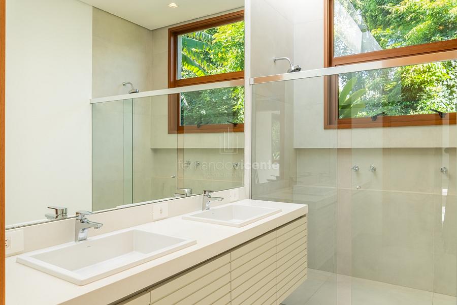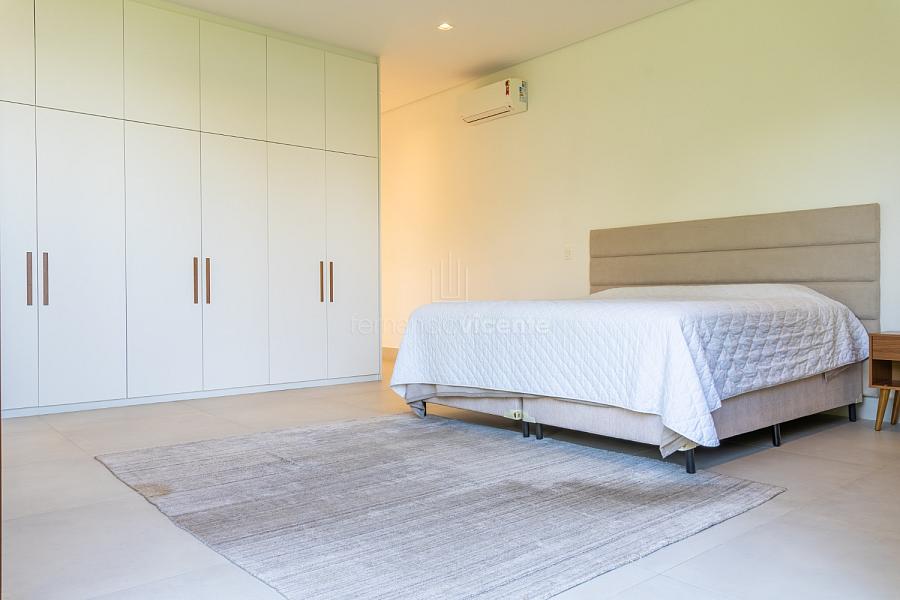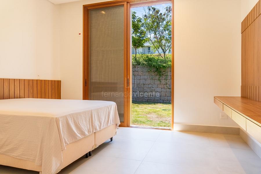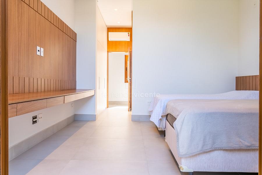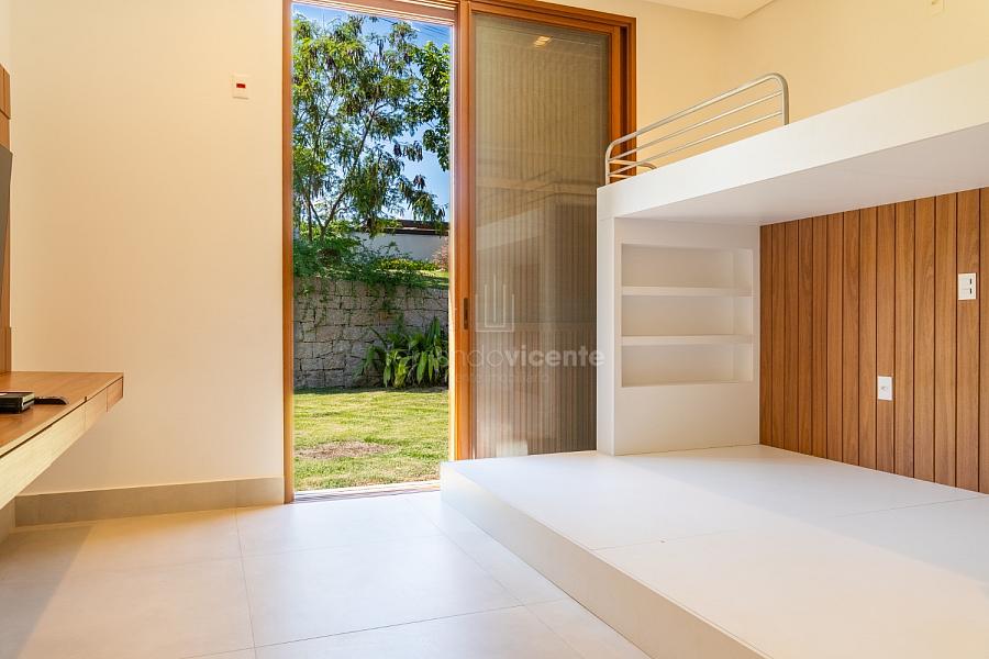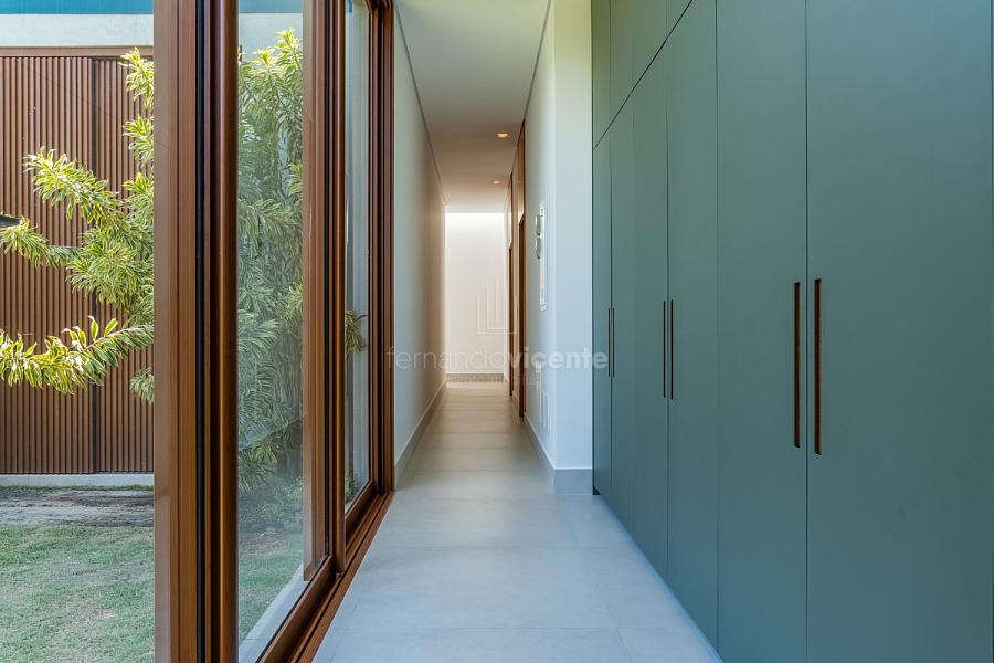 Na área íntima, são 5 dormitórios amplos, todos com armários planejados e ar-condicionado Daikin. Duas suítes voltadas para o jardim e a piscina ampliam a experiência de morar em contato com o verde, com privacidade e tranquilidade.