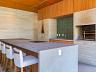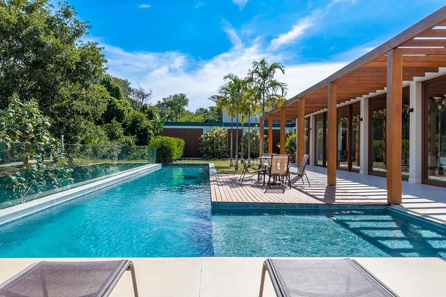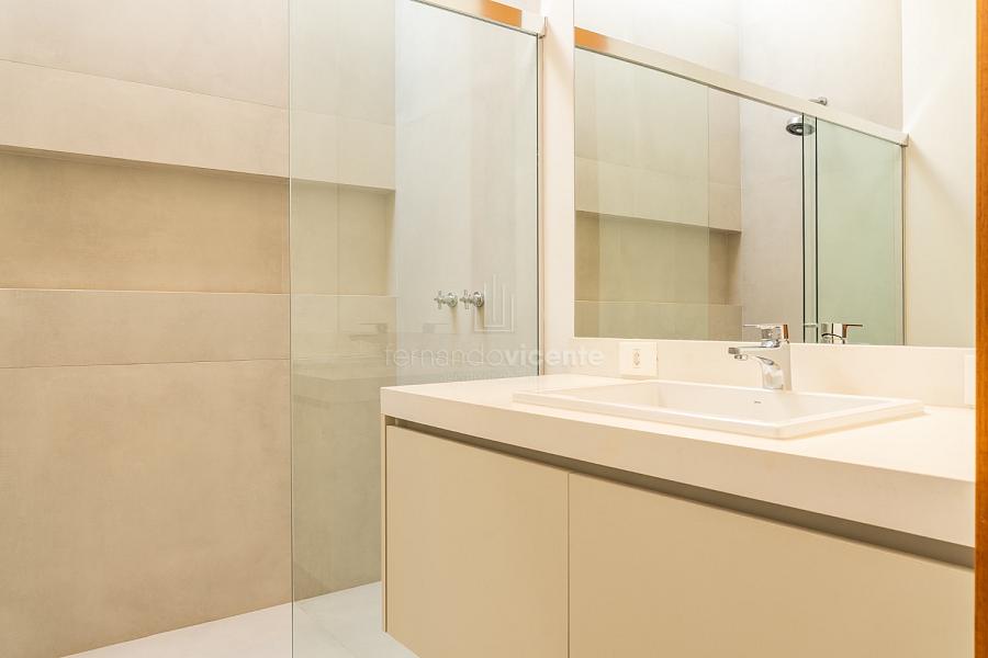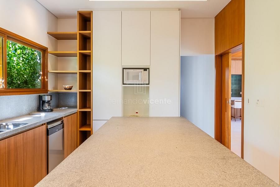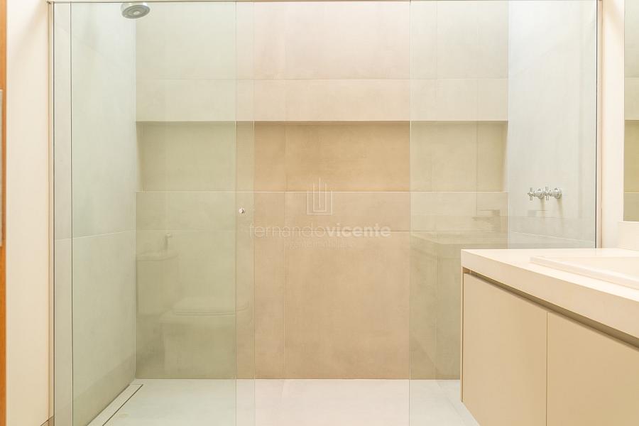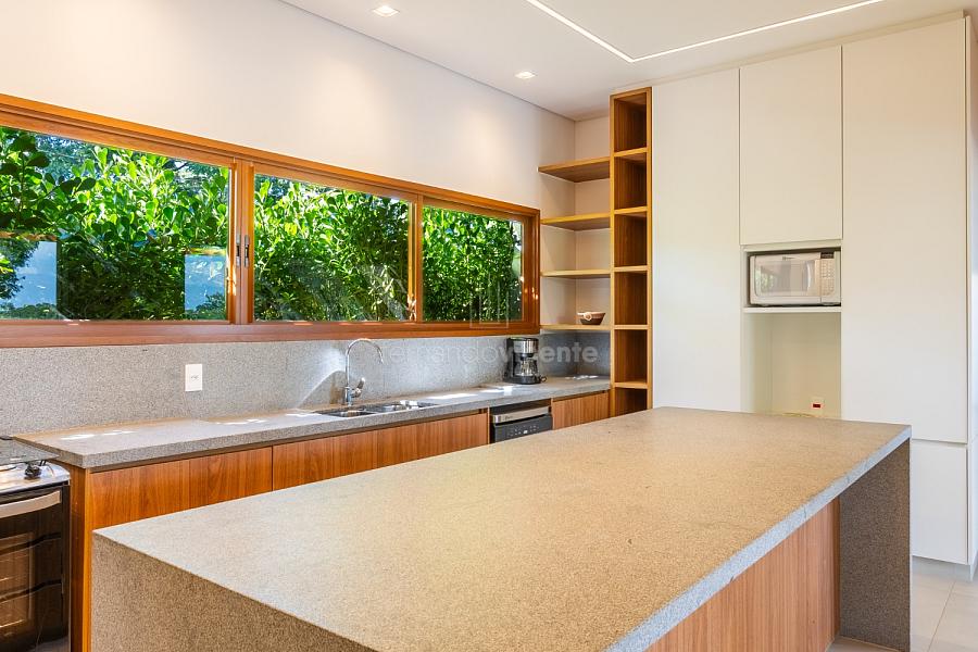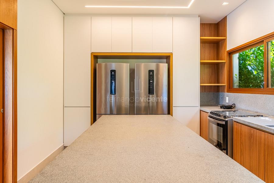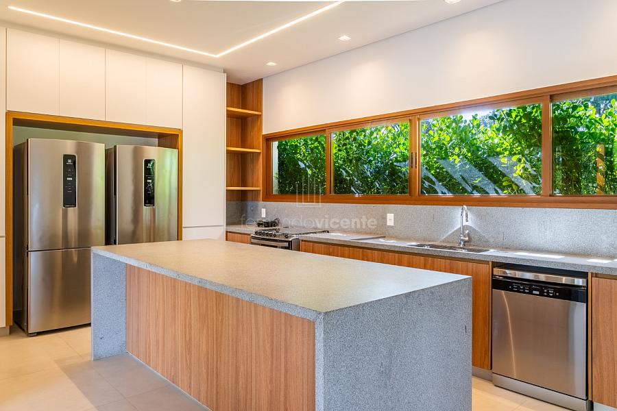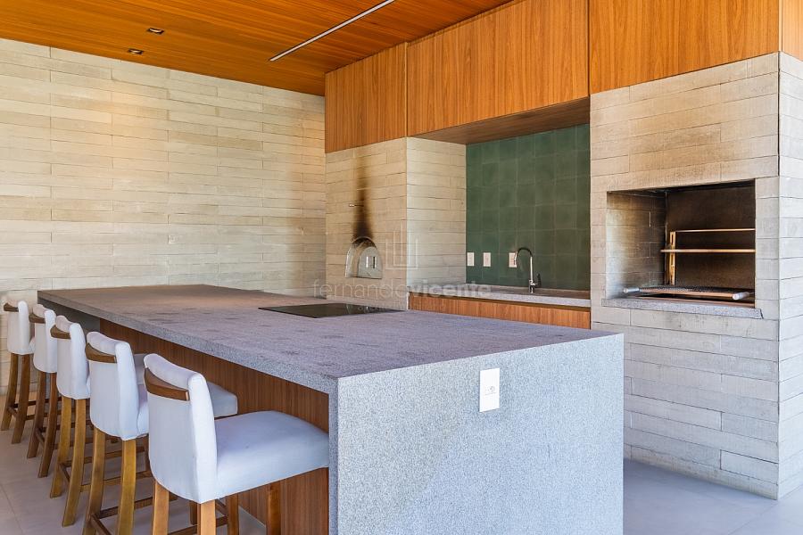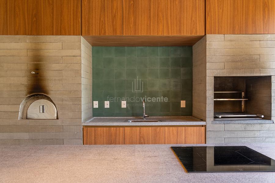O lazer segue o mesmo conceito de integração e conforto: piscina com aquecimento solar, sauna úmida, banheiro externoe suíte de apoio para funcionária. A cozinha com ilha, equipada com marcenaria sofisticada e eletrodomésticos de alto padrão, completa o cenário com funcionalidade e presença.