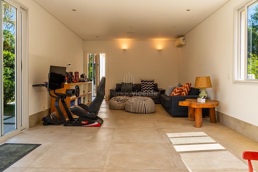 A área de lazer é um capítulo à parte, um convite constante à celebração e ao bem-estar em família. Uma bela varanda conecta o espaço gourmet, super bem montado com parrilha e forno de pizza, a uma animada sala de jogos. Para os momentos de puro deleite, um SPA com ofurô aguarda, enquanto a piscina aquecida com prainha e borda infinita se funde visualmente com a paisagem natural, criando um horizonte de serenidade. Um charmoso fireplace convida a conversas sob as estrelas, e para a alegria dos mais jovens, uma encantadora casa de boneca e um campinho de futebol. Tudo isso emoldurado por um amplo jardim gramado que se estende suavemente até a mata nativa, garantindo uma privacidade absoluta e uma conexão genuína com o ambiente.