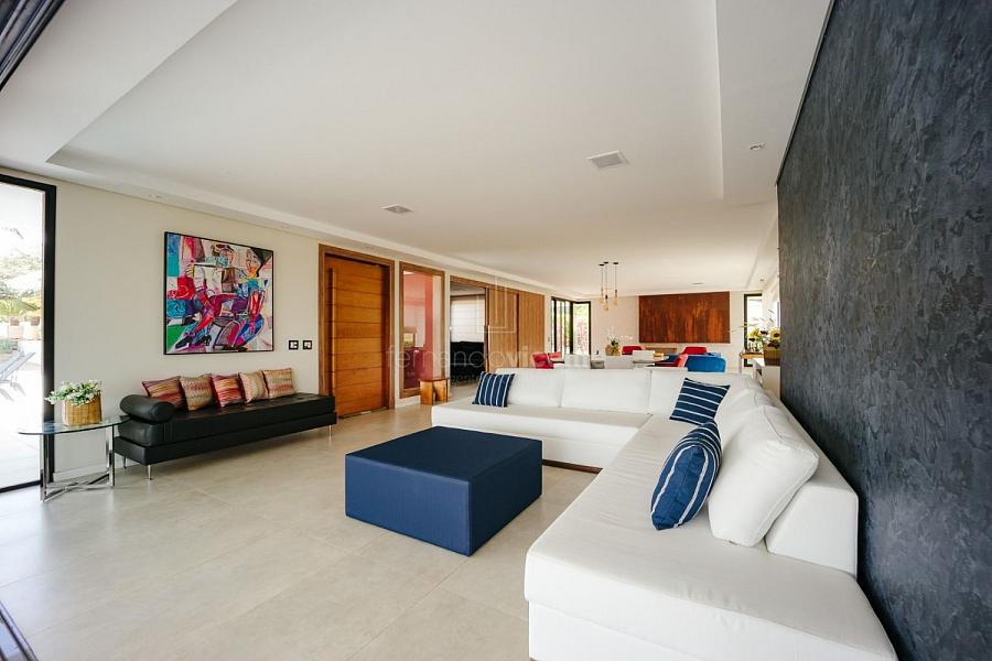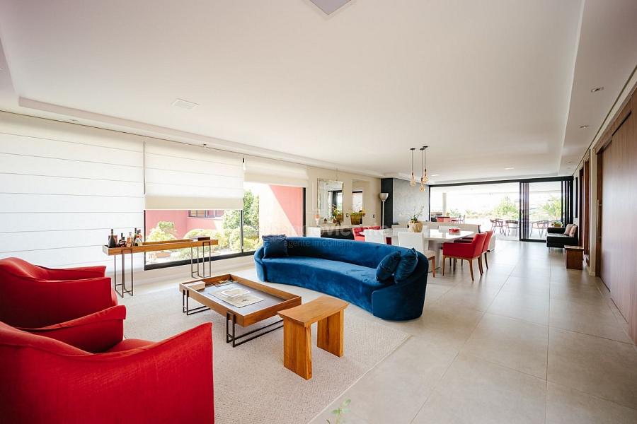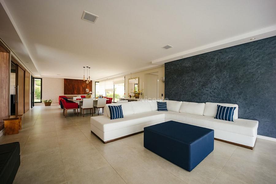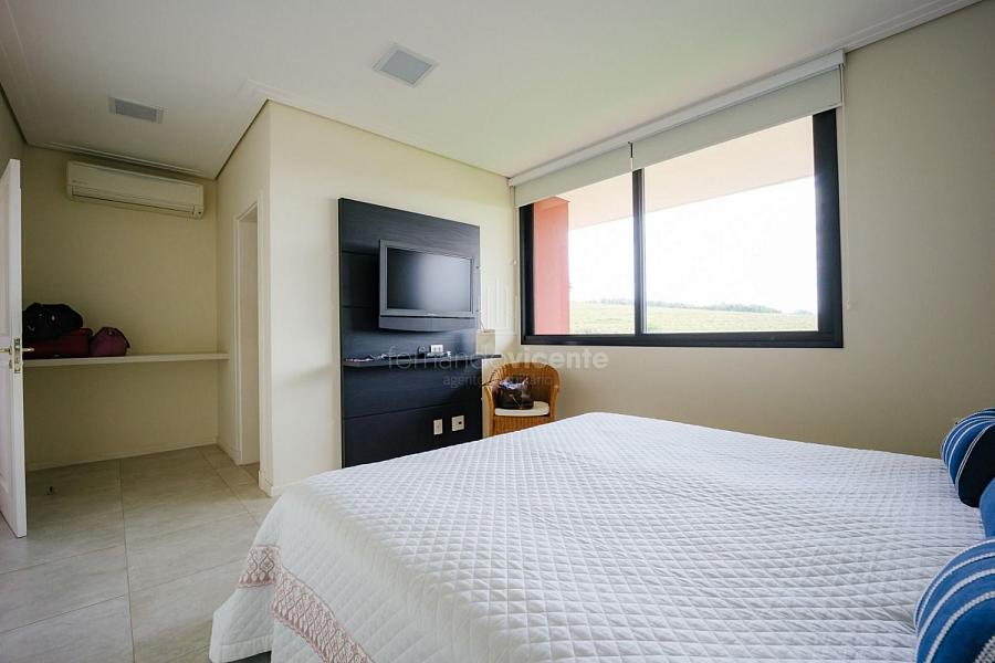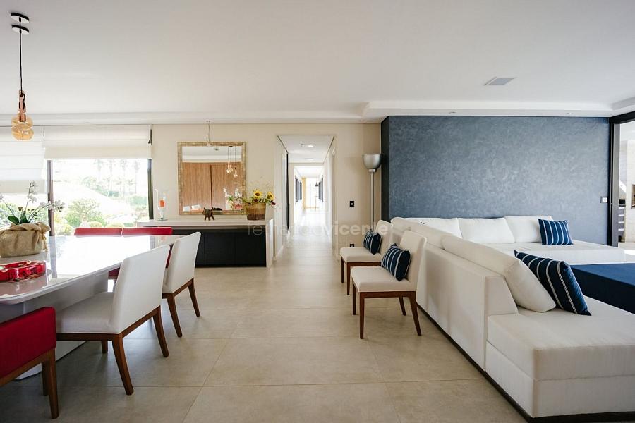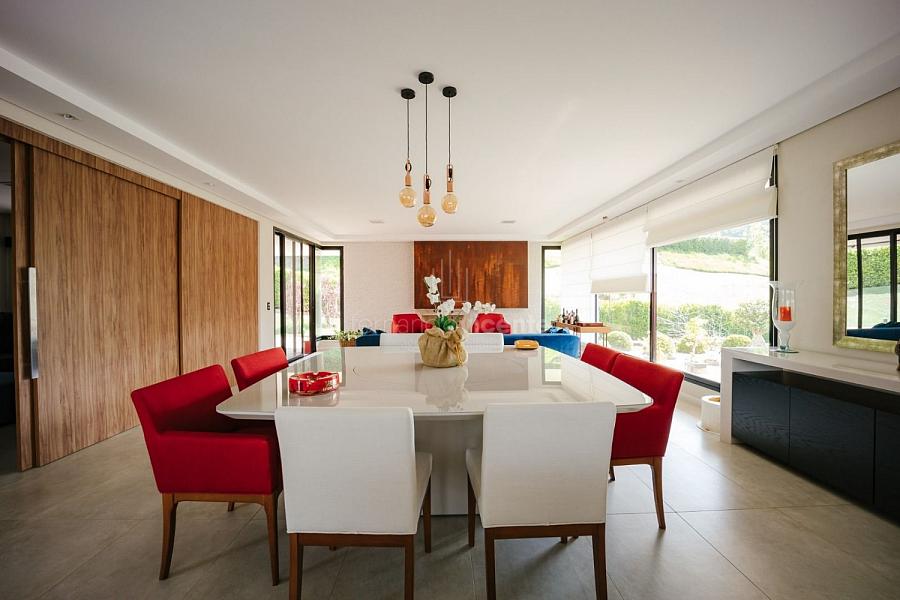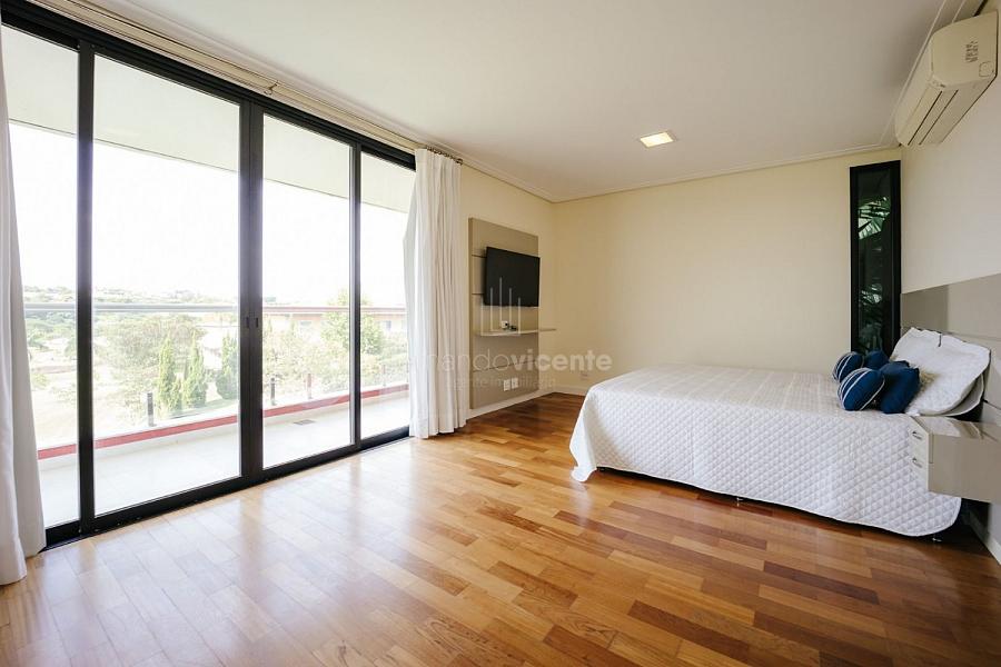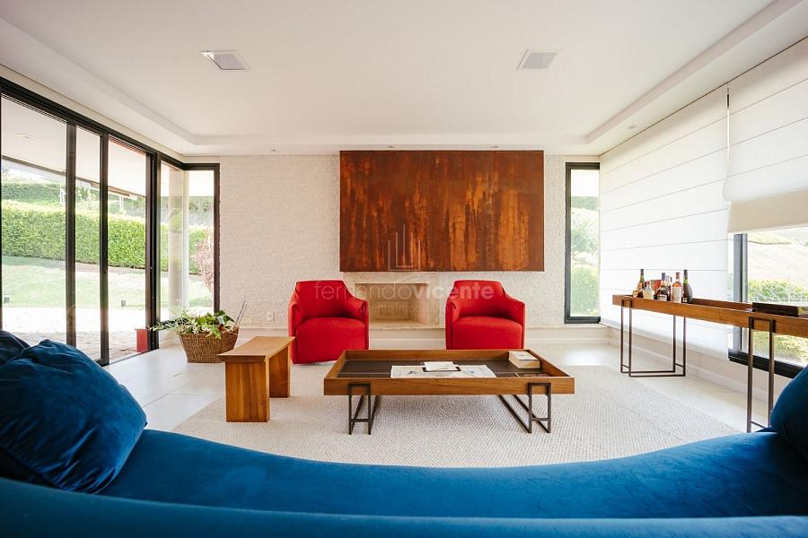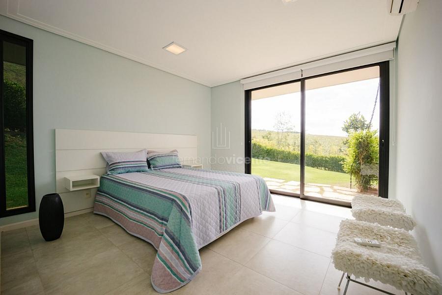 Com um belo projeto de arquitetura voltado para receber amigos e familiares, essa bela casa conta com infraestrutura completa de lazer, tudo com um conforto incrível! Sala ampla e aconchegante com 3 ambientes, integrada à área gourmet e cozinha, a sala ainda conta com lindo jardim de inverno e lareira. Belíssima e espaçosa sala de home theater. São 6 suítes completas, climatizadas, mobiliadas, inclusive com jogo de cama e banho! Área gourmet completa com linda vista para o campo de golfe do condomínio. Piscina aquecida com SPA. Cozinha completa conta com armários de extrema qualidade, fogão e coifas italianos. Acabamentos da casa com mármores e granitos importados. A casa será entregue toda mobiliada, decorada e com todos os itens de cozinha, como talheres, louças, cristais. Toda parte de cama, mesa e banho também estão inclusos. Apartamento de empregados e toda infraestrutura de serviço. Para você que procura praticidade, conforto e segurança, sem dispensar um belo e amplo repertorio de lazer, essa casa é perfeita! Agende uma visita e confira conosco.