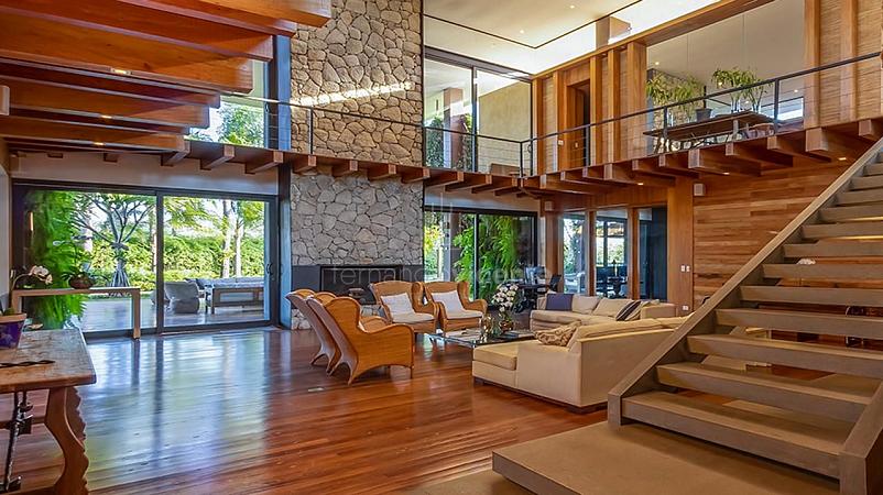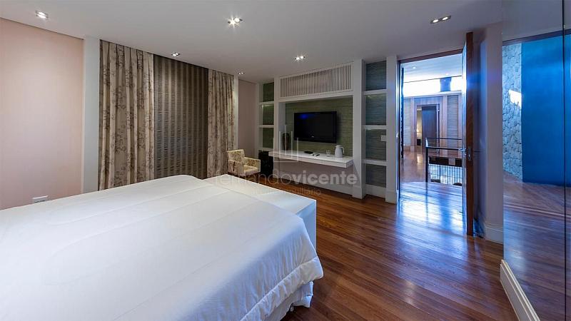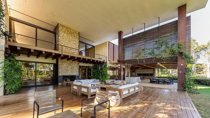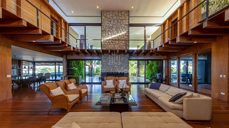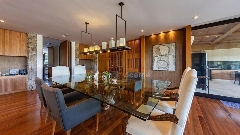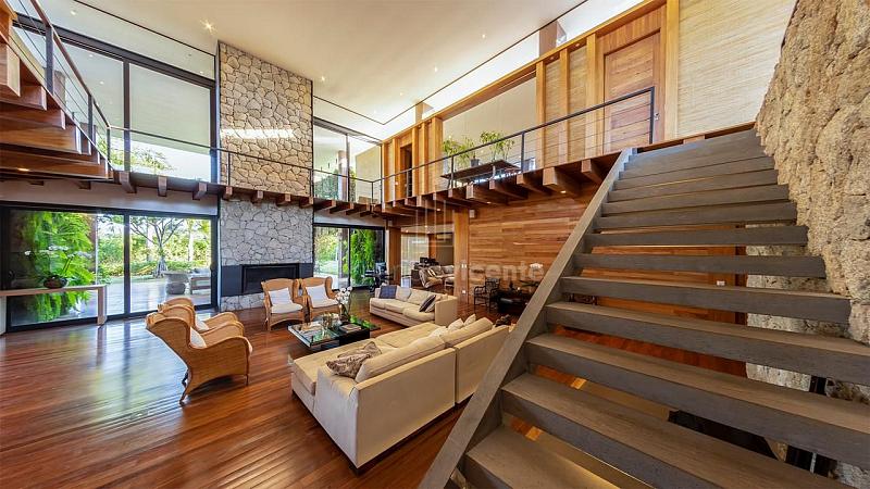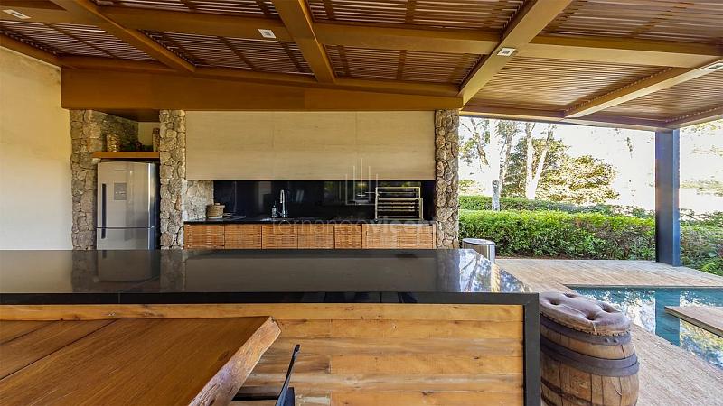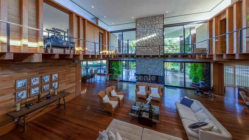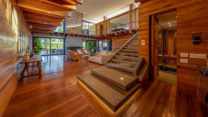 O refúgio com arquitetura contemporânea contrasta com o estilo rústico, seus ambientes aconchegantes são redecorados pelo escritório das arquitetas Andrea Teixeira e Fernanda Negrelli! São 3.300m² de terreno e 860 metros quadrados de área construída, oferece uma ampla sala de estar com lareira e pé direito duplo, lavabo, home theater, sala de jantar com adega e cozinha com ilha. Ao todo são 5 suítes confortáveis, sendo a máster agraciada com um closet espaçoso! Para o lazer e bem-estar temos uma extensa varanda que se integra à área gourmet, espaço de jogos, sauna úmida e uma bela piscina sob um relaxante deck em madeira. O deslumbrante paisagismo abraça toda extensão da residência proporcionado aos moradores e convidados uma experiência encantadora. Incluído o Título da Praia.