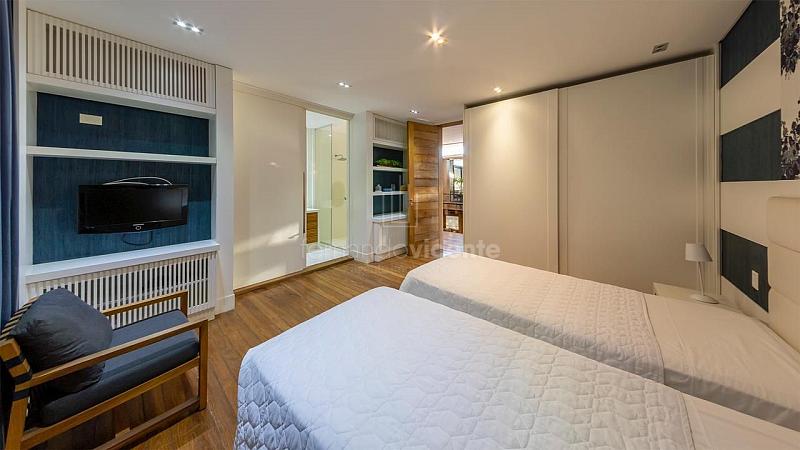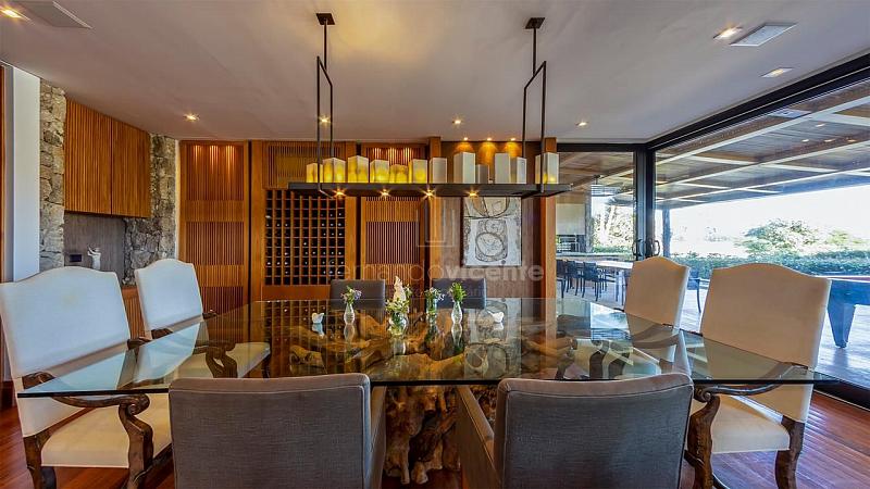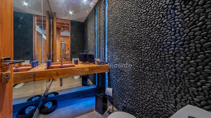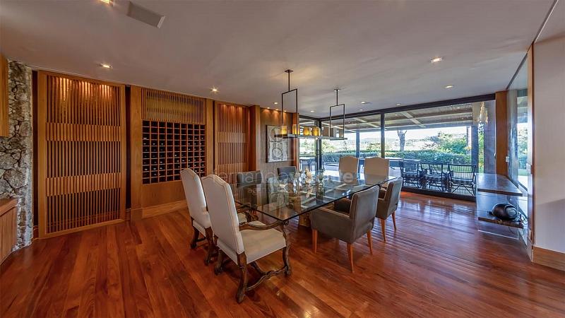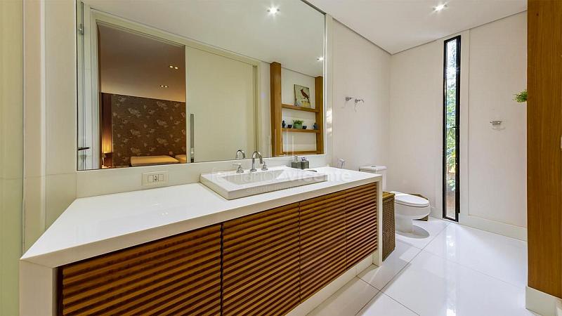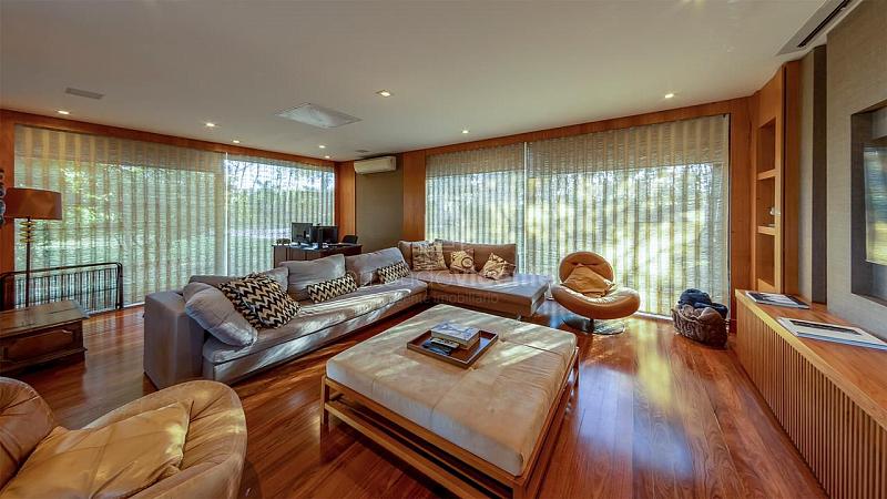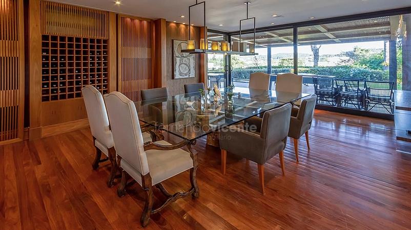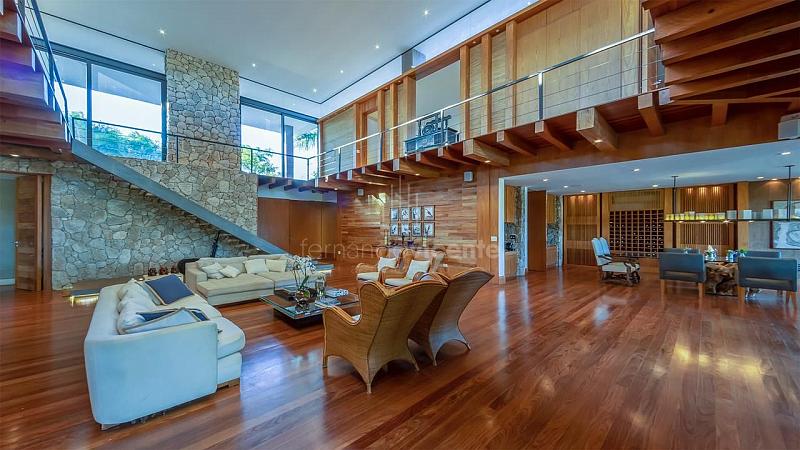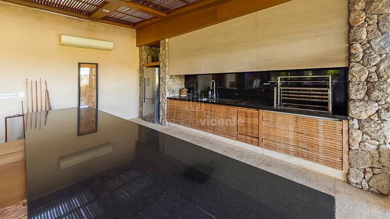 O refúgio com arquitetura contemporânea contrasta com o estilo rústico, seus ambientes aconchegantes são redecorados pelo escritório das arquitetas Andrea Teixeira e Fernanda Negrelli! São 3.300m² de terreno e 860 metros quadrados de área construída, oferece uma ampla sala de estar com lareira e pé direito duplo, lavabo, home theater, sala de jantar com adega e cozinha com ilha. Ao todo são 5 suítes confortáveis, sendo a máster agraciada com um closet espaçoso! Para o lazer e bem-estar temos uma extensa varanda que se integra à área gourmet, espaço de jogos, sauna úmida e uma bela piscina sob um relaxante deck em madeira. O deslumbrante paisagismo abraça toda extensão da residência proporcionado aos moradores e convidados uma experiência encantadora. Incluído o Título da Praia.
