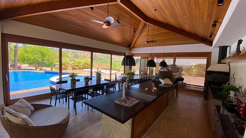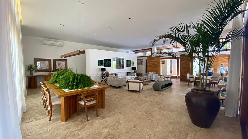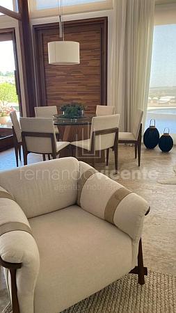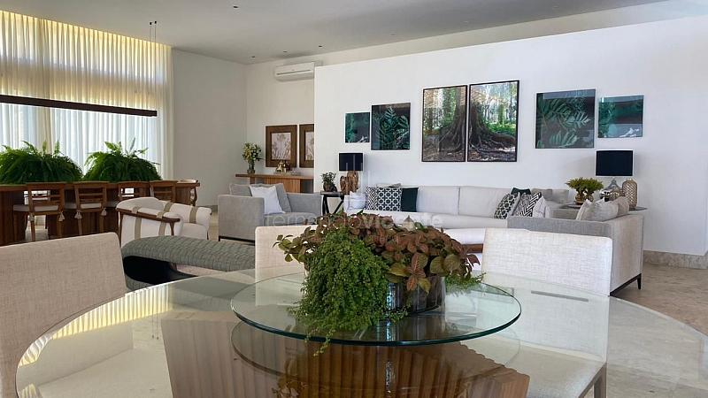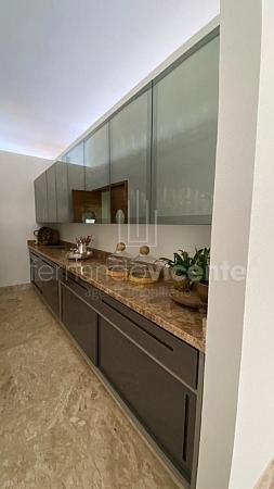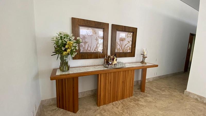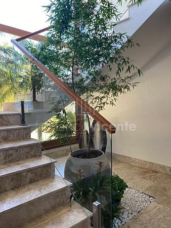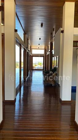 Oferece estrutura completa, ar condicionado na casa toda, contendo 05 suítes, copa/cozinha com despensa, salas de jantar ampla, visitas e tv, lavanderia de apoio com banheiro de colaboradores, dependências de caseiro (módulo, espaço gourmet completo, churrasqueira, fogão importado com forno de pizza acoplado. Piscina borda infinita com spa para 16 pessoas e iluminação de led, deck iluminado em madeira nobre e castelato com espelho d’água. Infraestrutura pronta para elevador. Instalação para Ar-Condicionado, aspiração de rodapé em todos os cômodos. Instalação para lareira. Suíte Master de 110 m² com sacada.