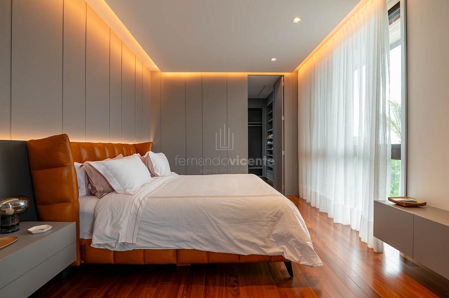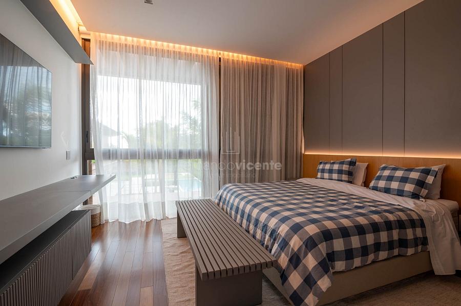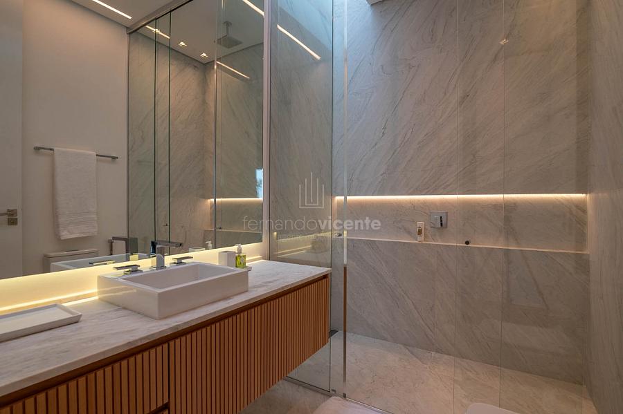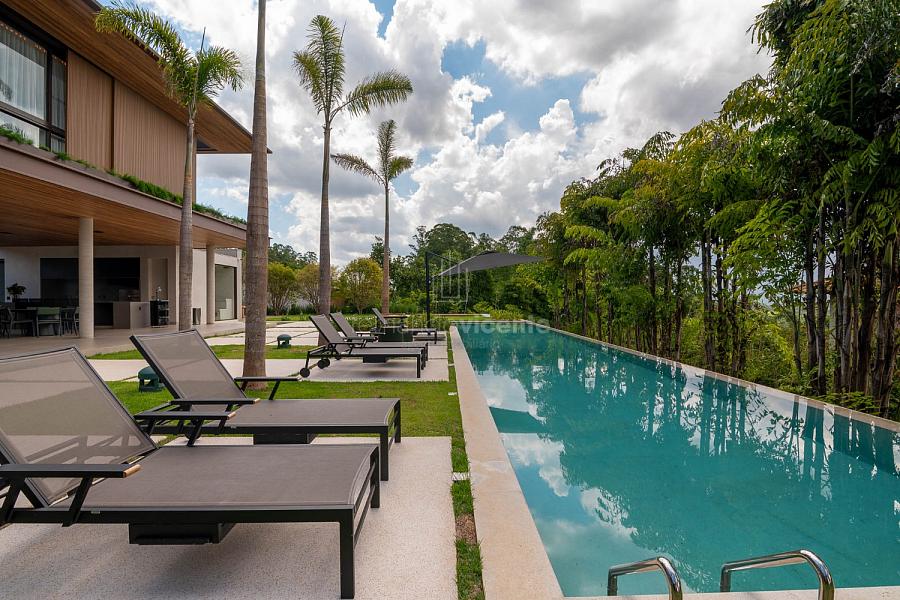 Elegância e modernidade neste incrível projeto, assinado pelo escritório Padovani Arquitetura, privilegiando a integração e a linda vista de todos ambientes! São 3.180m² de terreno e quase 1.000m² construídos com living para dois ambientes e pé direito duplo, lavabo, home theater, home office e cozinha completa com ilha. Ao todo são 6 suítes aconchegantes e avarandadas, sendo a máster agraciada com um amplo closet. Para o lazer e bem-estar o repertório é completo, conta com uma extensa varanda para relaxar, espaço gourmet conectado aos demais ambientes, rooftop com hidro, uma bela piscina aquecida com prainha e borda infinita que se estende à sauna úmida. Há ainda academia, espaço zen, fogo de chão para reunir e um paisagismo deslumbrante envolvendo toda extensão da residência! Conheça de perto, agende agora sua visita!