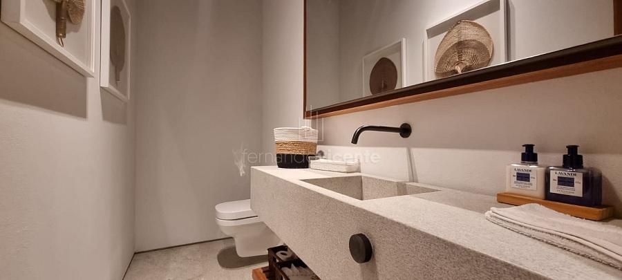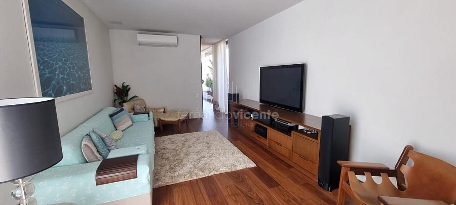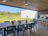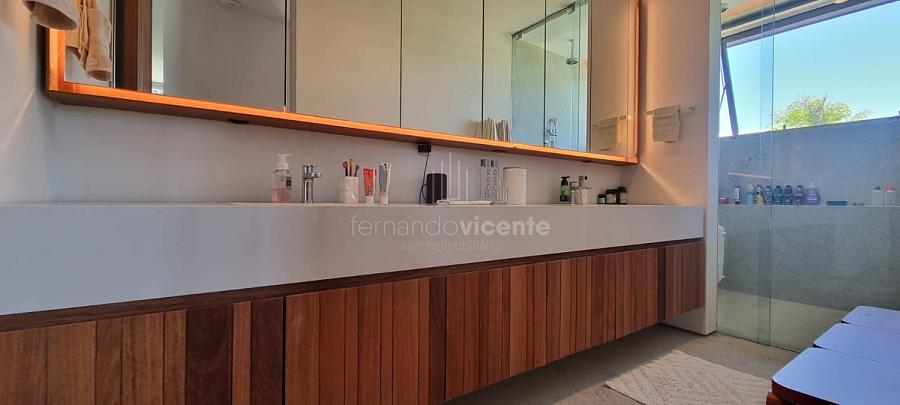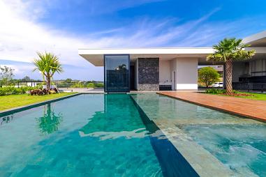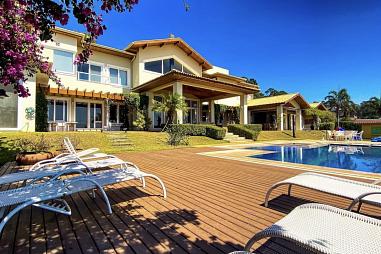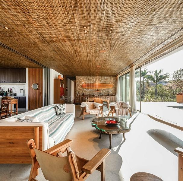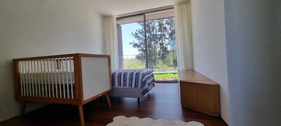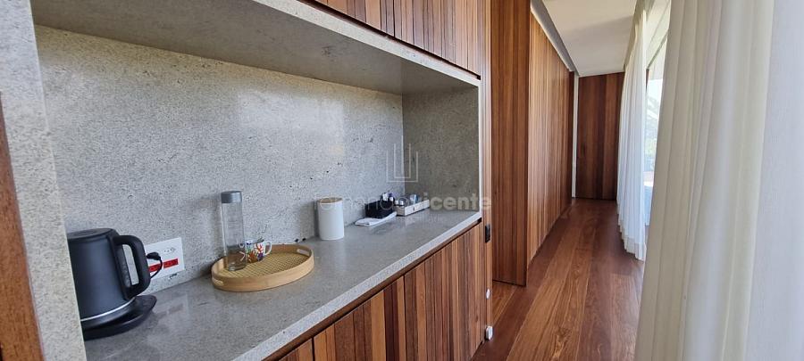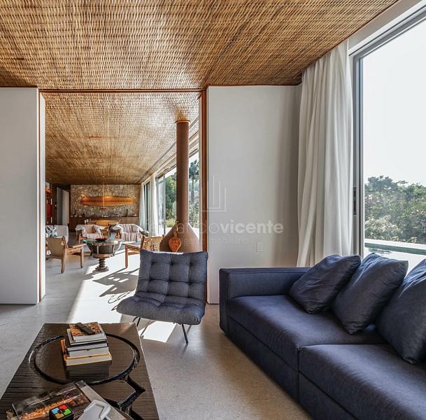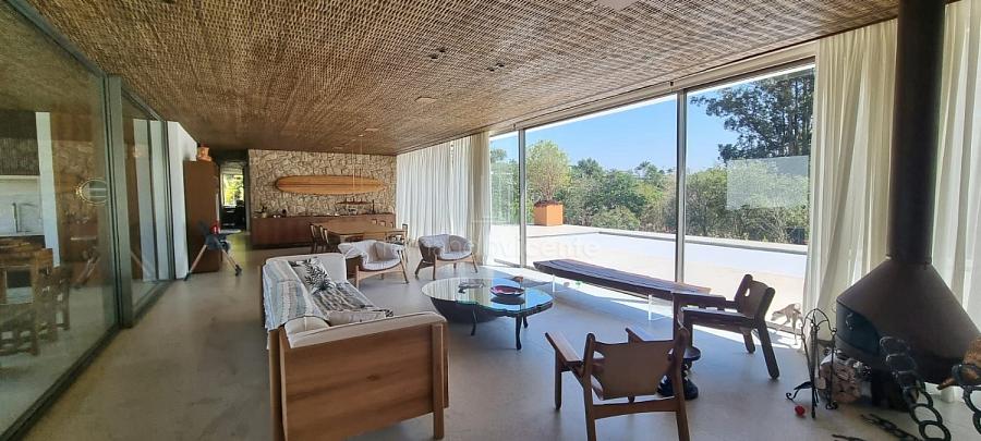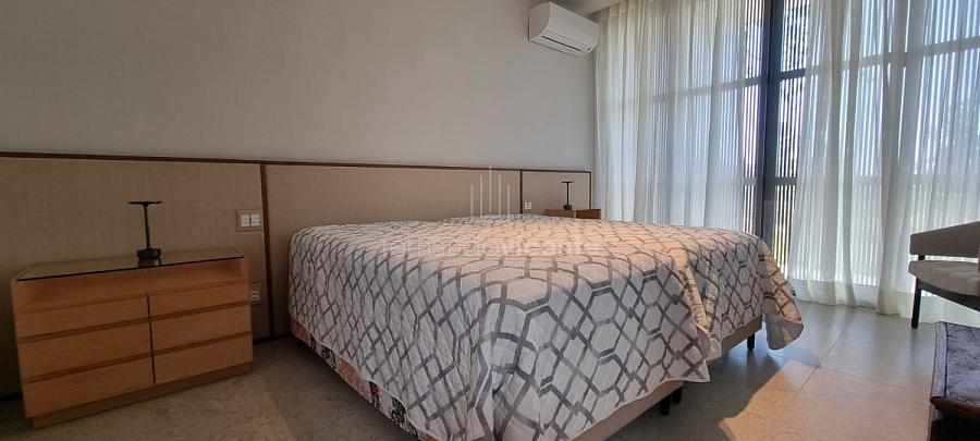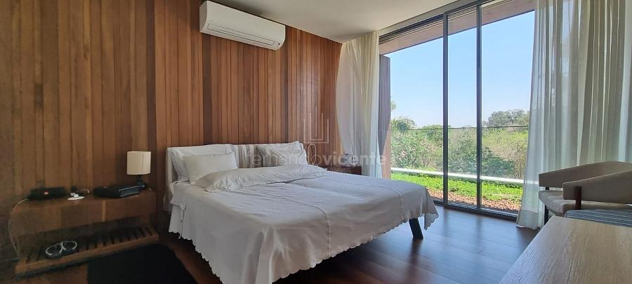 Casa nova com vista permanente, projeto assinado por Gabriel Garbin, iluminação natural abundante, paisagismo MB Flores, árvores frutíferas e horta. Apresenta living amplo, sala de estar e jantar com lareira 360° Construflama, área gourmet e escritório, além de luz e persianas com automação. Os ambientes são integrados, com forro diferenciado em tramas de vime e dispõe de varanda com vista para a área de lazer. A cozinha e a área de serviço têm armários planejados. Na parte íntima há cinco suítes, sendo duas no térreo e três no andar superior. A suíte master é espaçosa, dispõe de walk-in closet e piso em tábuas de cumaru. A área gourmet é equipada com parrilla Construflama, ice maker e beer center Elettromec, adega Art des Caves e chopeira Stambeer. Há ainda piscina com vista para área verde, água com aquecimento solar, placas fotovoltaicas, captação de água de chuva para irrigação do jardim, poço artesiano e gerador a gás MWM, além de casa de caseiro com dois quartos climatizados, banheiro, sala e cozinha. A casa dispõe de oito vagas de garagem. Para você que procura um condômino de alto padrão com campo de Golf e um linda praia, esta eh a oportunidade.
