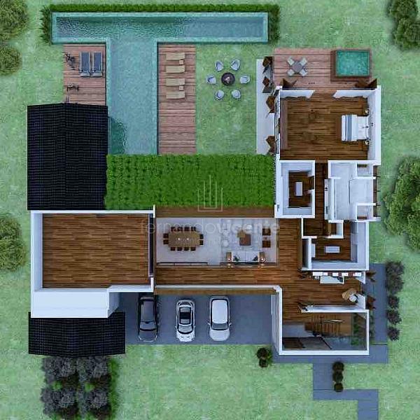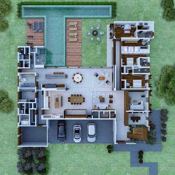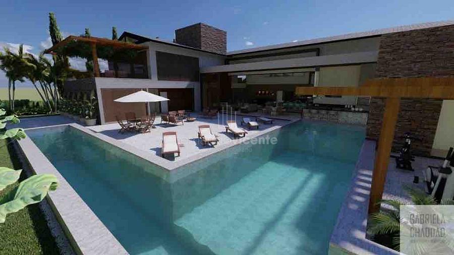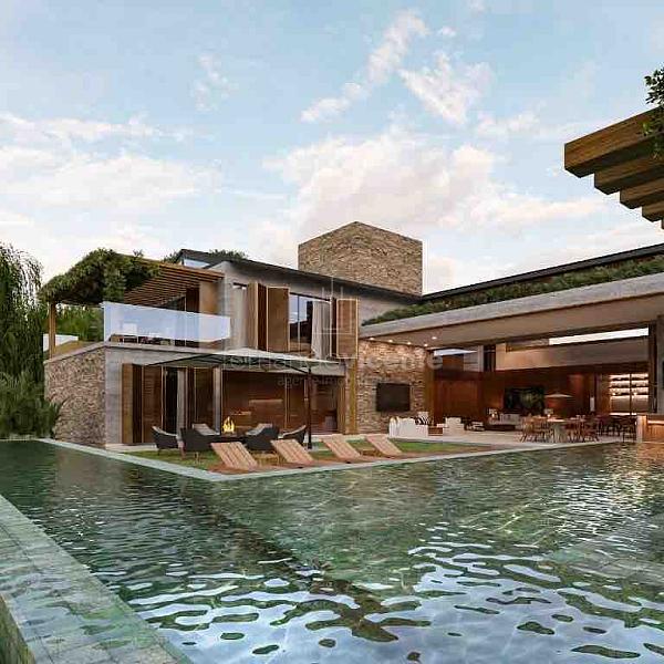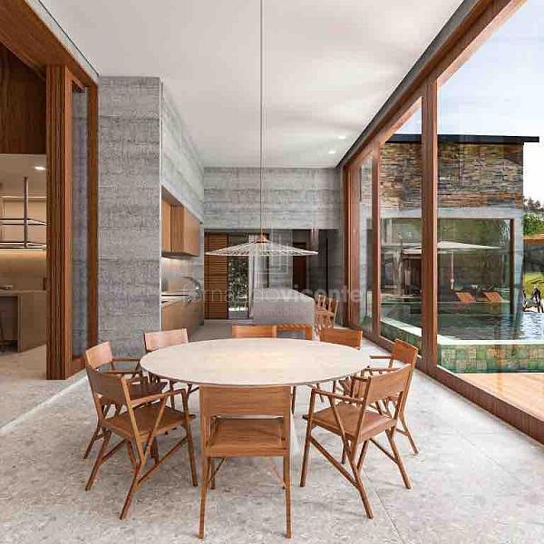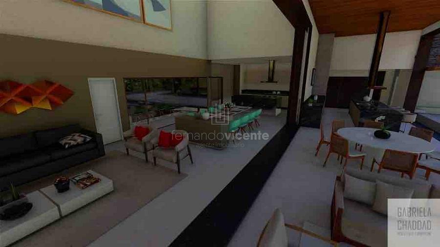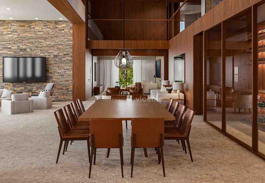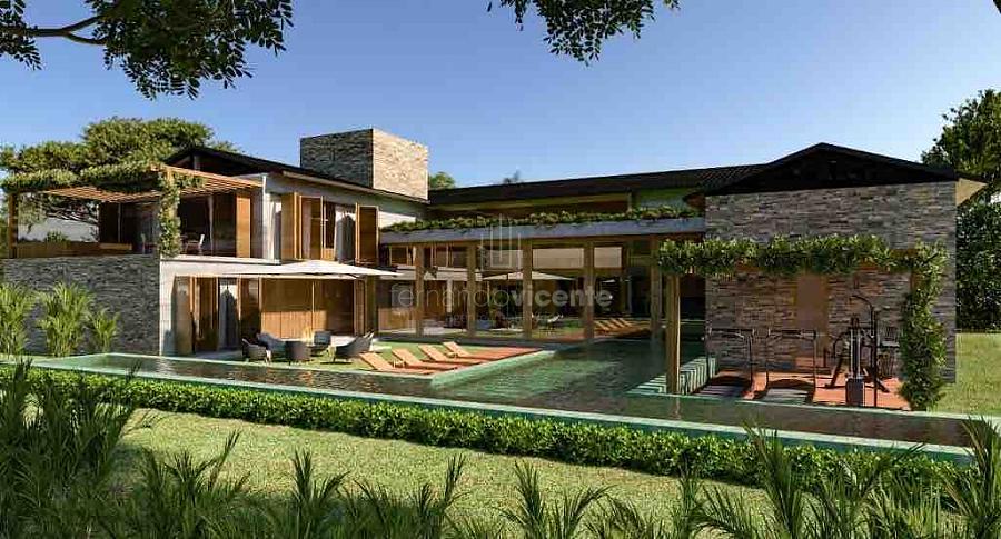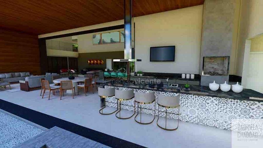 A casa conta com 812 m², área de lazer completa com piscina, hidro/prainha, sauna úmida, fitness, varanda gourmet e espaço kids.