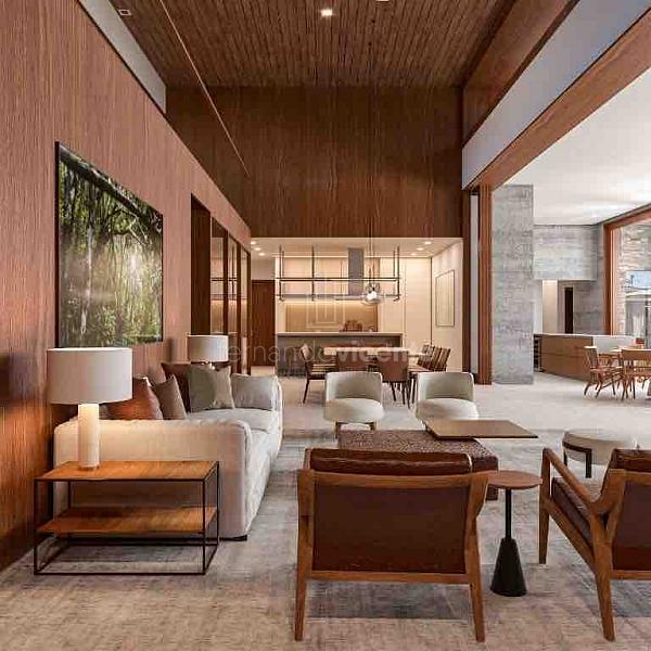 São 4 suítes, todas com closet, sendo uma master com varanda, escritório, home theater, lavabo, adega, sala de estar, sala de jantar, cozinha, despensa, área de serviço, com quarto e banheiro para funcionários, depósito e 5 vagas de garagem.