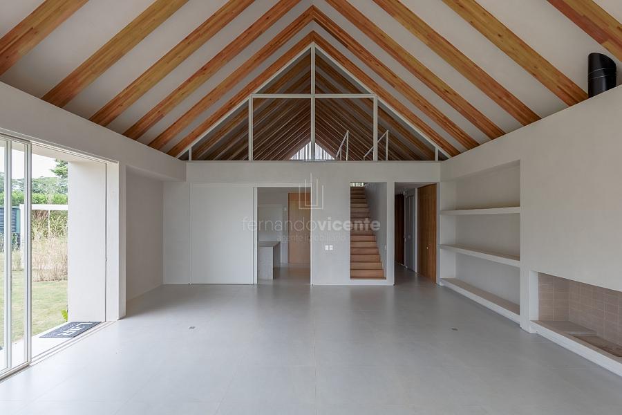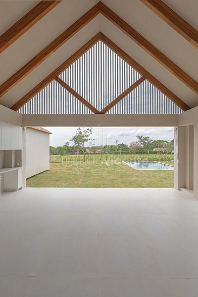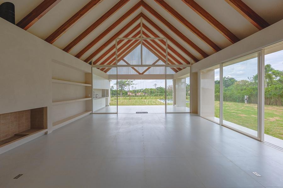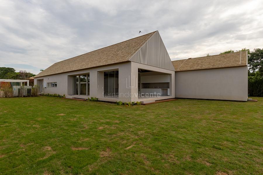 Inspirada pelo campo e com um ar minimalista, a residência assinada pelo escritório Triptyque Architecture conta com 617m² de área construída divididos em dois setores: íntimo e social. A área de convivência dispõe de salas de estar e jantar com pé direito duplo, cozinha com ilha e home theater no mezanino destacando a estrutura em madeira, totalmente aparente! Já no setor íntimo são 5 suítes aconchegantes e charmosas com acesso ao jardim, senda a master agraciada com um espaçoso closet. Para o lazer e bem-estar temos espaço gourmet integrado aos demais ambientes, uma bela piscina com prainha sob um relaxante deck e um paisagismo encantador abraçando toda extensão do imóvel! Venha conhecer, envie agora uma mensagem e agende sua visita!
