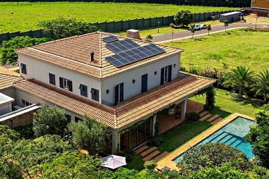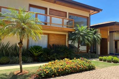 O paisagismo assinado por Catê Poli é um destaque à parte, integrando a casa ao seu entorno natural e criando uma atmosfera serena e exclusiva.