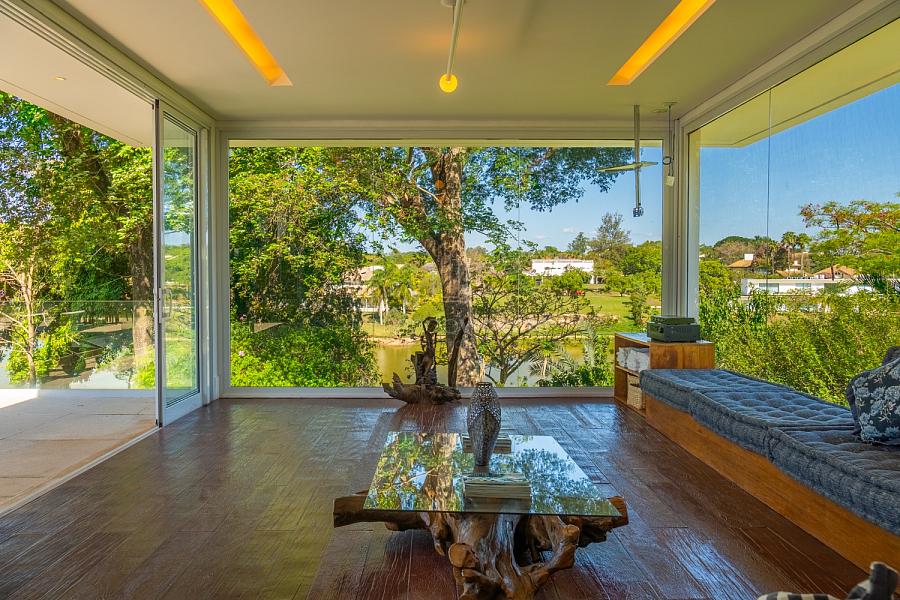 A integração com a natureza é o toque mestre: garagem náutica para jet ski para aventuras aquáticas diretas do quintal, jardim gramado extenso e paisagismo harmonioso que envolve a propriedade, criando um oásis pet-friendly onde o verde nativo se funde ao azul do lago. Sustentável e funcional, esta casa é um investimento em bem-estar eterno.