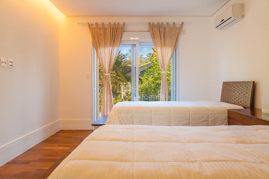 No setor íntimo, o conforto reina com 11 suítes aconchegantes, sendo duas master exclusivas com banheiros amplos e closets generosos – refúgios pessoais que garantem privacidade para todos. Para o lazer, o repertório é invejável: salão de jogos vibrante, sauna úmida integrada a um SPA relaxante, espaço zen ou academia versátil, e uma piscina aquecida com raia, prainha e bar molhado, toda voltada para o lago, convidando a nados revigorantes ou mergulhos ao pôr do sol.