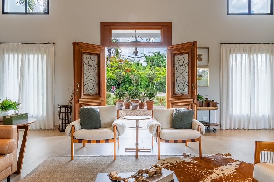 Em uma das ruas mais desejadas do Fazenda Vila Real, esta residência térrea traduz o encontro perfeito entre elegância atemporal e conforto contemporâneo. Assinada pela arquiteta Fernanda Santoro, ela combina a força do estilo toscano com linhas atuais, criando uma casa que impressiona sem exageros — e acolhe desde o primeiro passo.